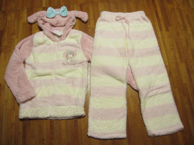 *新品*M*マイメロディ*ピンク*ふわふわもこもこルームウエア上下*リボンミミ付*サンリオ*
