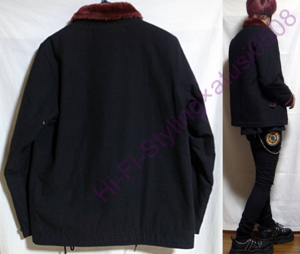 ご回覧ありがとうございます。お手数ではございますがトラブルの元になりますので、説明文は最後までお読み下さい。 着画がある場合のモデルは177×62位の男性です。値下げ交渉はご遠慮下さい。 こちらはSACRIFICE / サクリファイスのデッキジャケットになります。サイズ表記はMです。 中綿が薄めに入っていてシルエットを維持しながら保温性も確保しています。 珍しいファーがワインレッドのカラーリングになっていて黒の生地にとっても合っていて格好良いです。胸のプリントも味わいがありか素敵です。裏地も格好良いので脱いでかけている時も良い感じです。 女性がオーバーサイズで着られても絶対に可愛いと思いますのでパートナーとの兼用やプレゼントとしても喜ばれるかと思います。 状態はused clothingですが美品で特別なダメージや汚れは感じられません。普段からコーディネートに古着も合わすお洒落さんなら問題無いかと思います。神経質な方はご遠慮下さいませ。 サイズ表記 M 実寸平置き(背中心着丈 68cm位、脇下身幅 53cm位、肩幅 43cm位、袖丈 62㎝位) ※着画モデルは177×62位の男性です。 特殊なアイテムの素人採寸ですので多少の誤差はご了承の上ご参加下さい。 |