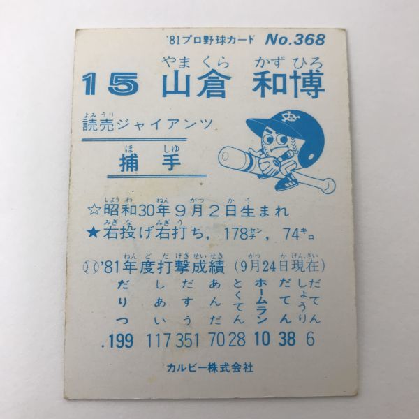 1981年 カルビー プロ野球カード 346番 巨人 山倉 81年   【管理NO:202-26】