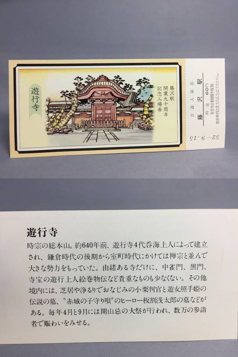 国鉄・東京南鉄道管理局 昭和52年9月15日 藤沢駅開業90周年記念 入場券5枚 【k12-0039】