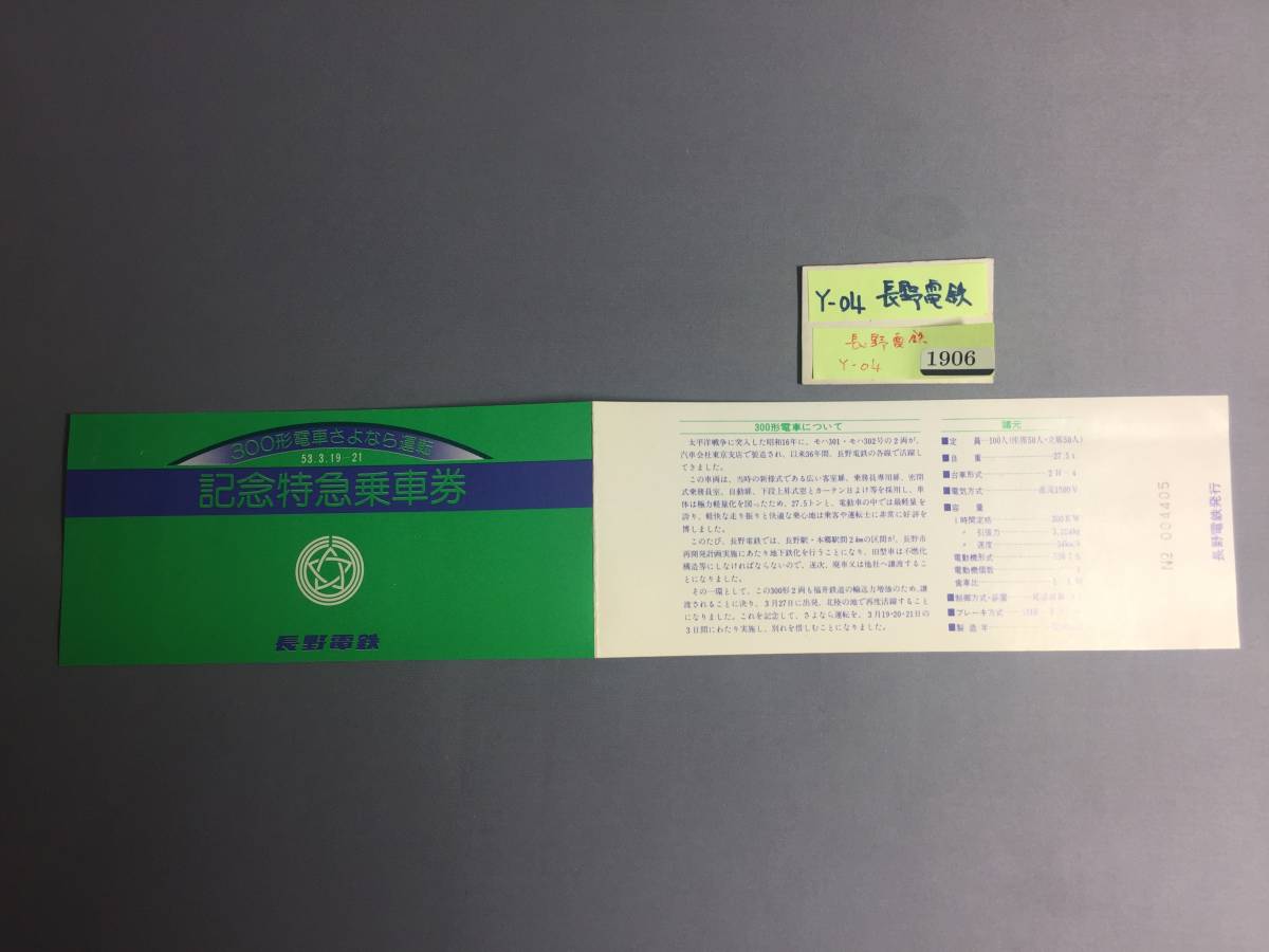 長野電鉄 53・3・19~21 300形電車さよなら運転記念特別急行券 オリジナル大判特別急行券1枚 【Y04-1906】