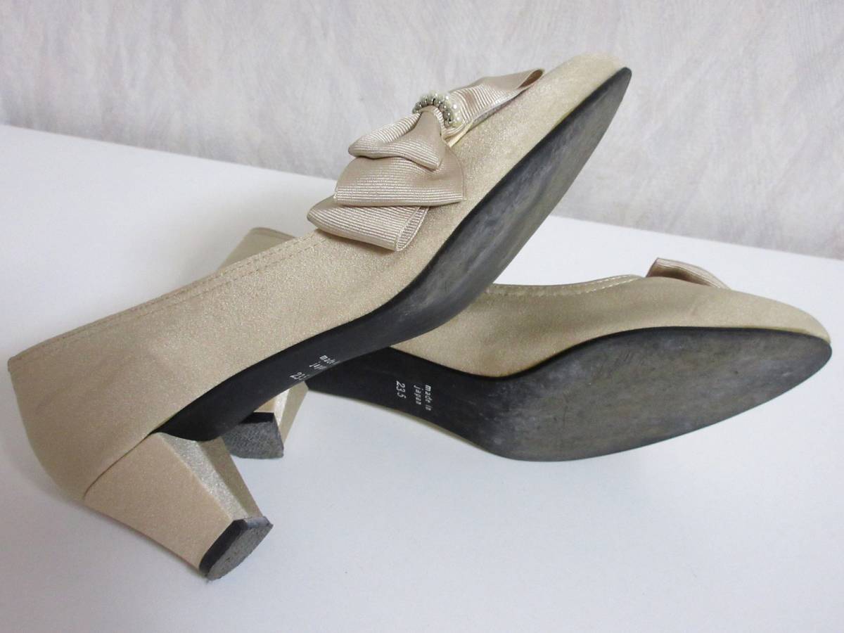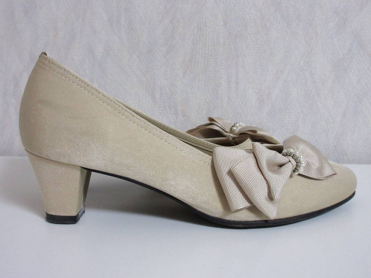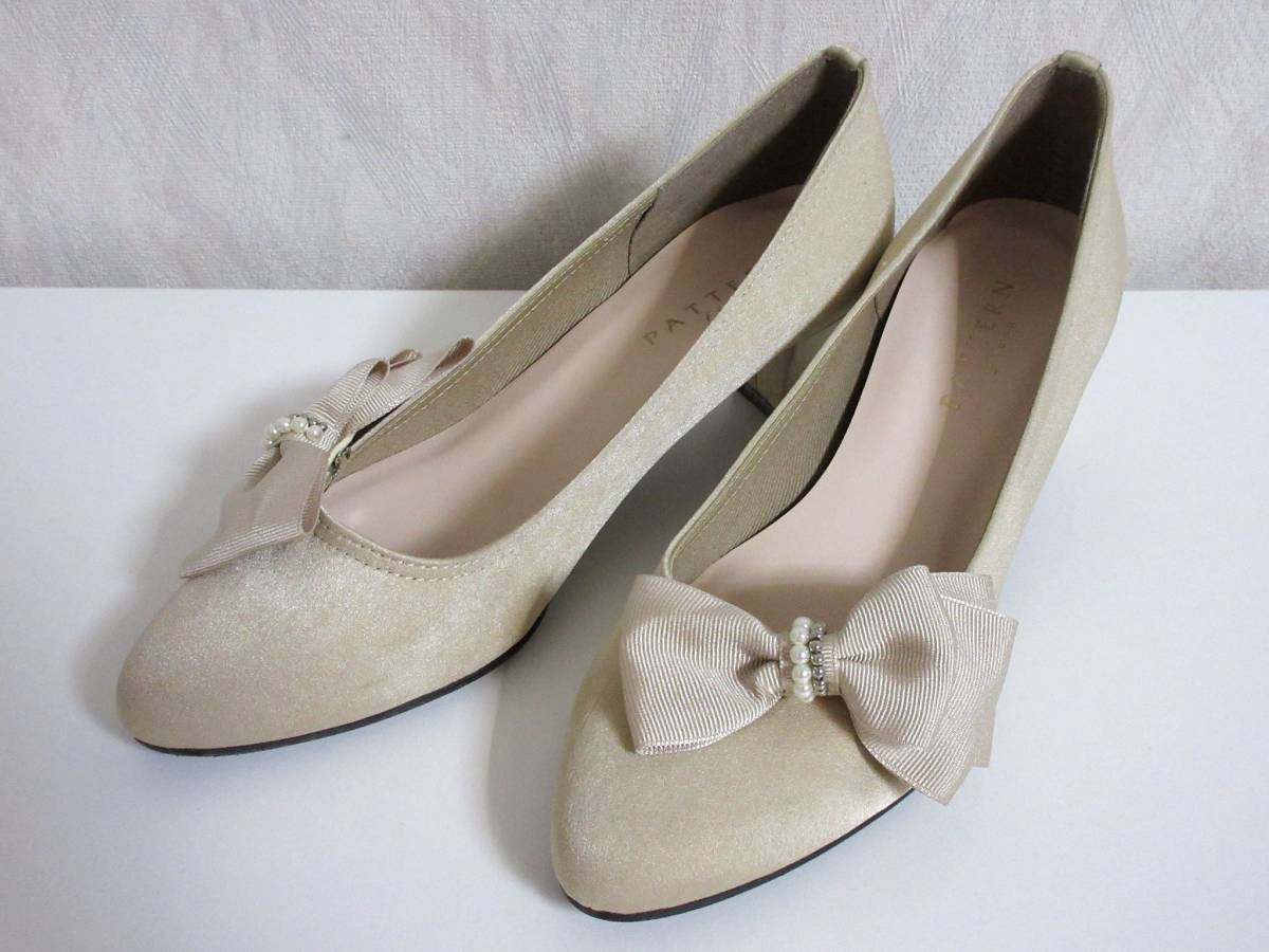 パターンフィオナ PATTERN fiona リボン パール パンプス ベージュ 23.5 北1096