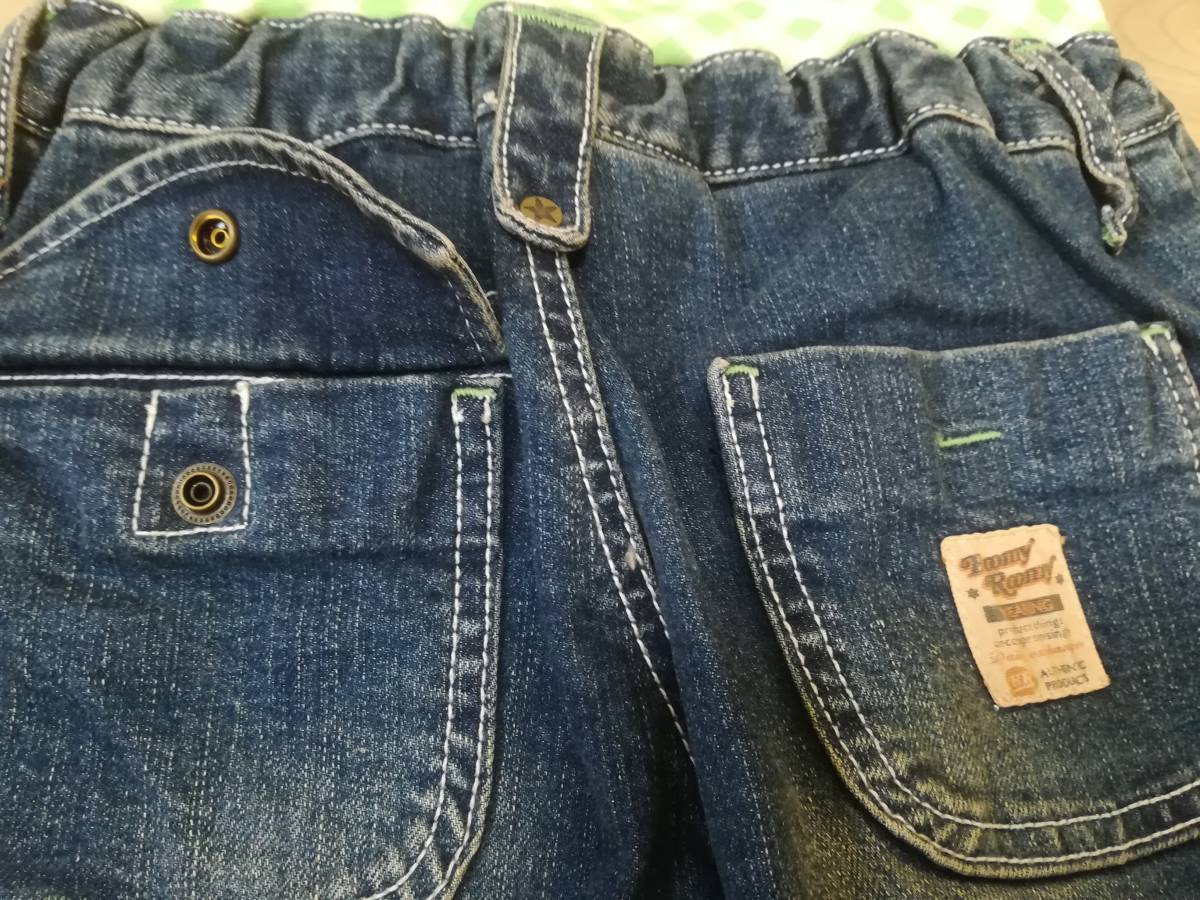 後ろポケットは1つはボタンになっております。前に2つポケットあり。