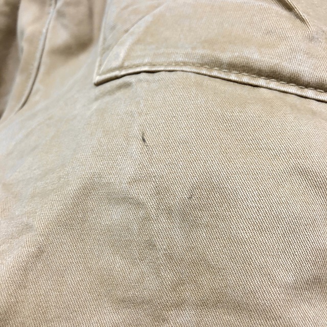 | 商品状態・ディテールなど | (※実測寸法など、多少の誤差はご容赦下さい。) (※商品は全て畳んで保管しております。保管による畳み皺などはございます。その点ご了承下さい。) ・ダメージ:褪せ、右バックポケット下に若干黒シミ箇所 ・ディテール:- |