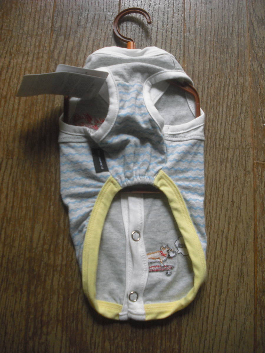 写真のような洋服になります。 本体価格:¥3300+税 550-90549 19041 サイズは3S 首囲:17~20cm 胴囲:27~32cm 参考標準犬種:チワワ ヨーキー 綿95% ポリウレタン5% (株)クリエイティブ ヨーコ 写真一枚目の状態で巻尺で測って、おおまかですが・・・着丈20.5cm、首回り26cm位の大きさです。 新品、未使用品ですが保管中の汚れ、畳みジワ、経年劣化、他商品と触れあっているため糸クズの付着などございますし、個人所有になりますので糸のほつれ、汚れやスレなどの痛みがある場合もございます。 現状でよろしくお願いします。 約46g 簡易包装の規格内の定形外郵便100gかレターパックライトで発送予定です。 |