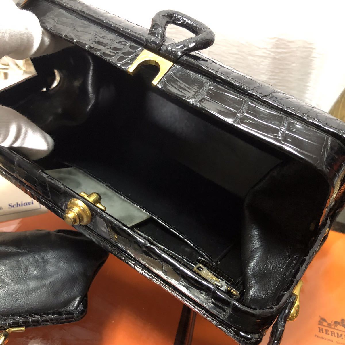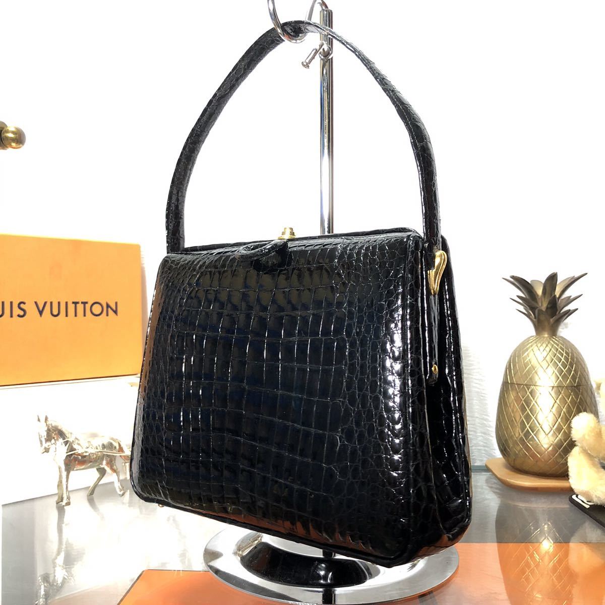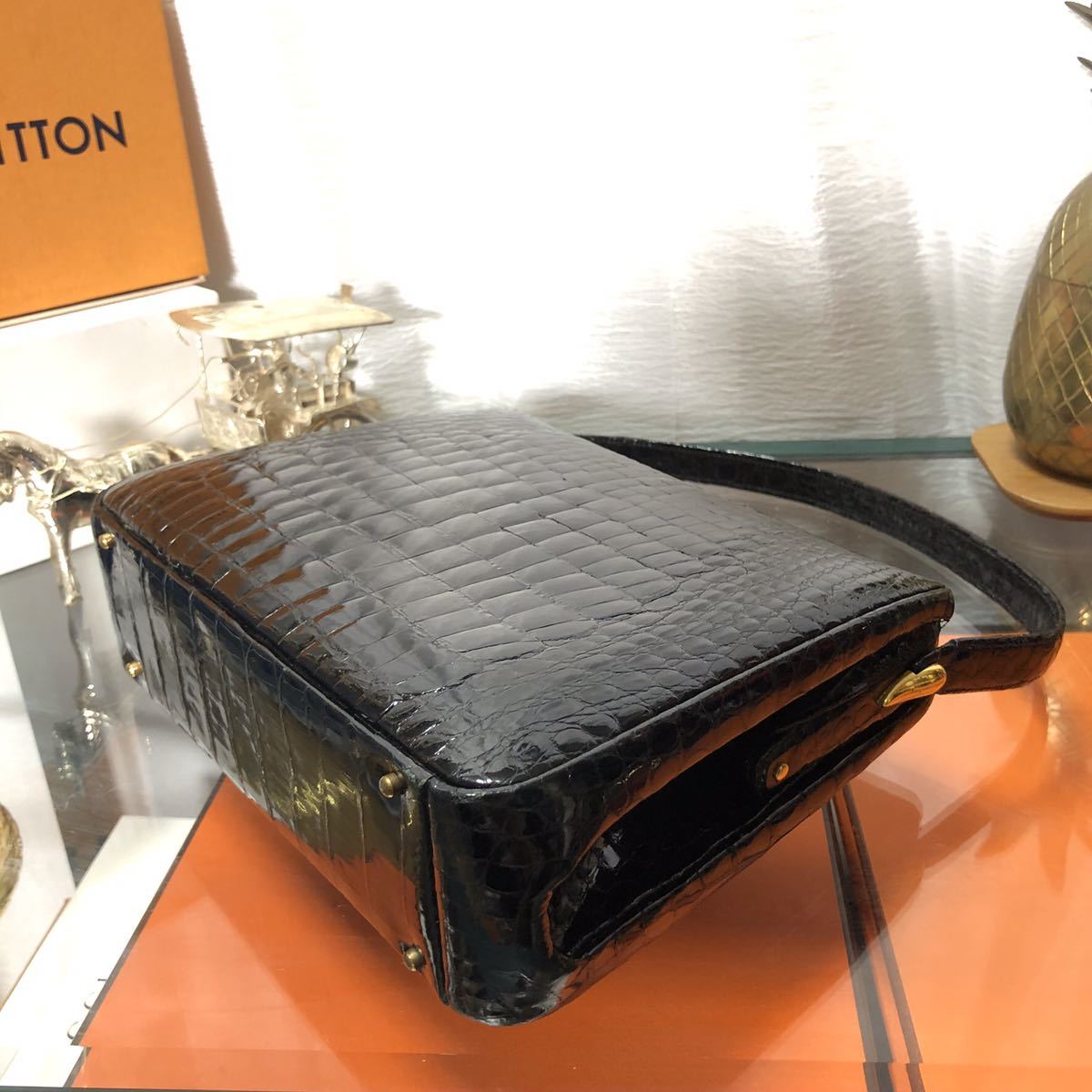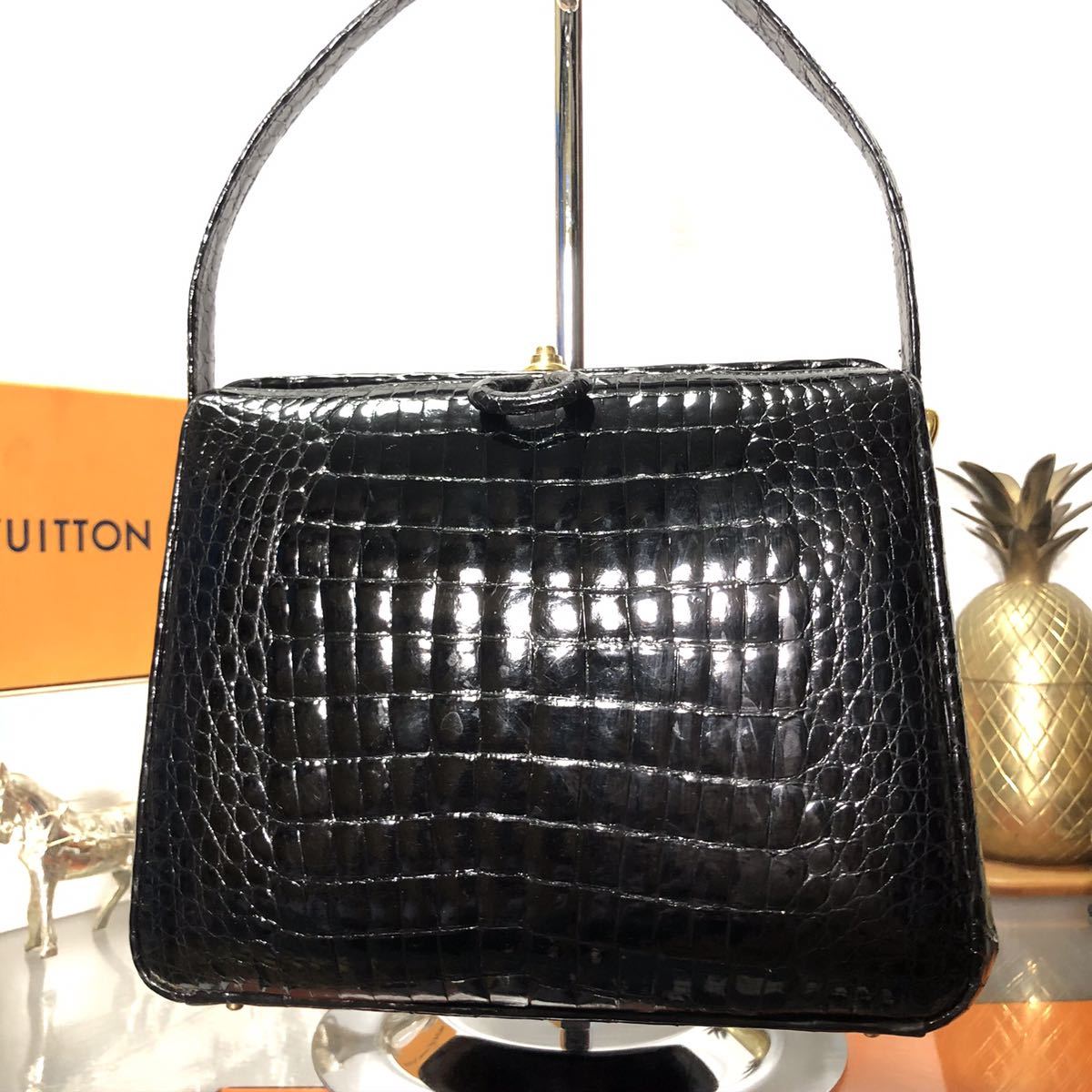 商品説明:表面的なくすみや小傷、ハンドルに少しクロコの鱗にそってダメージがございますが目立つ使用感はございません。
