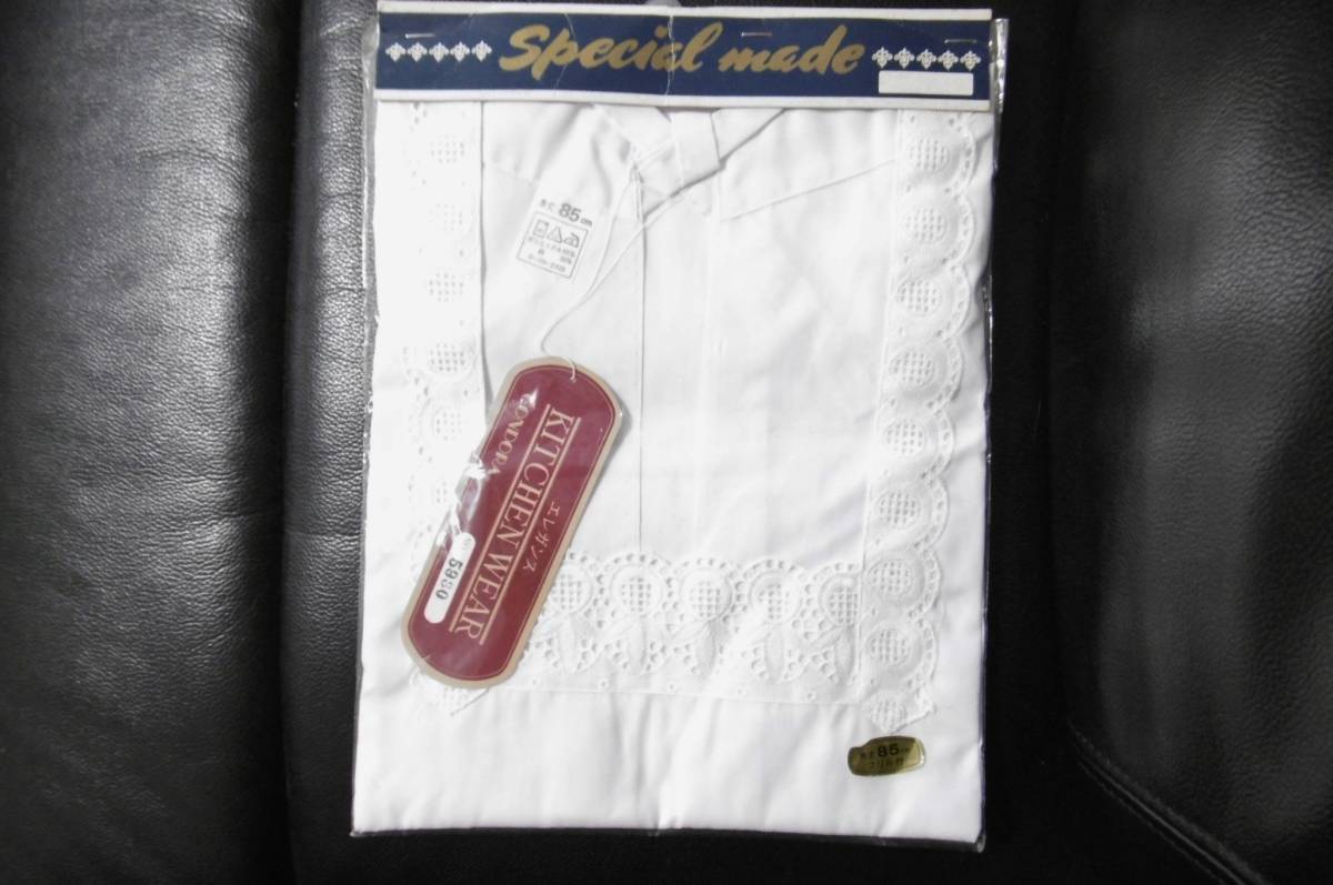 | ★ 商品名 *未使用美品★割烹着★白色 エプロン★洋装 和装 昭和レトロ ★キッチンウエア★L寸 丈85cm フリル付き★4480 |