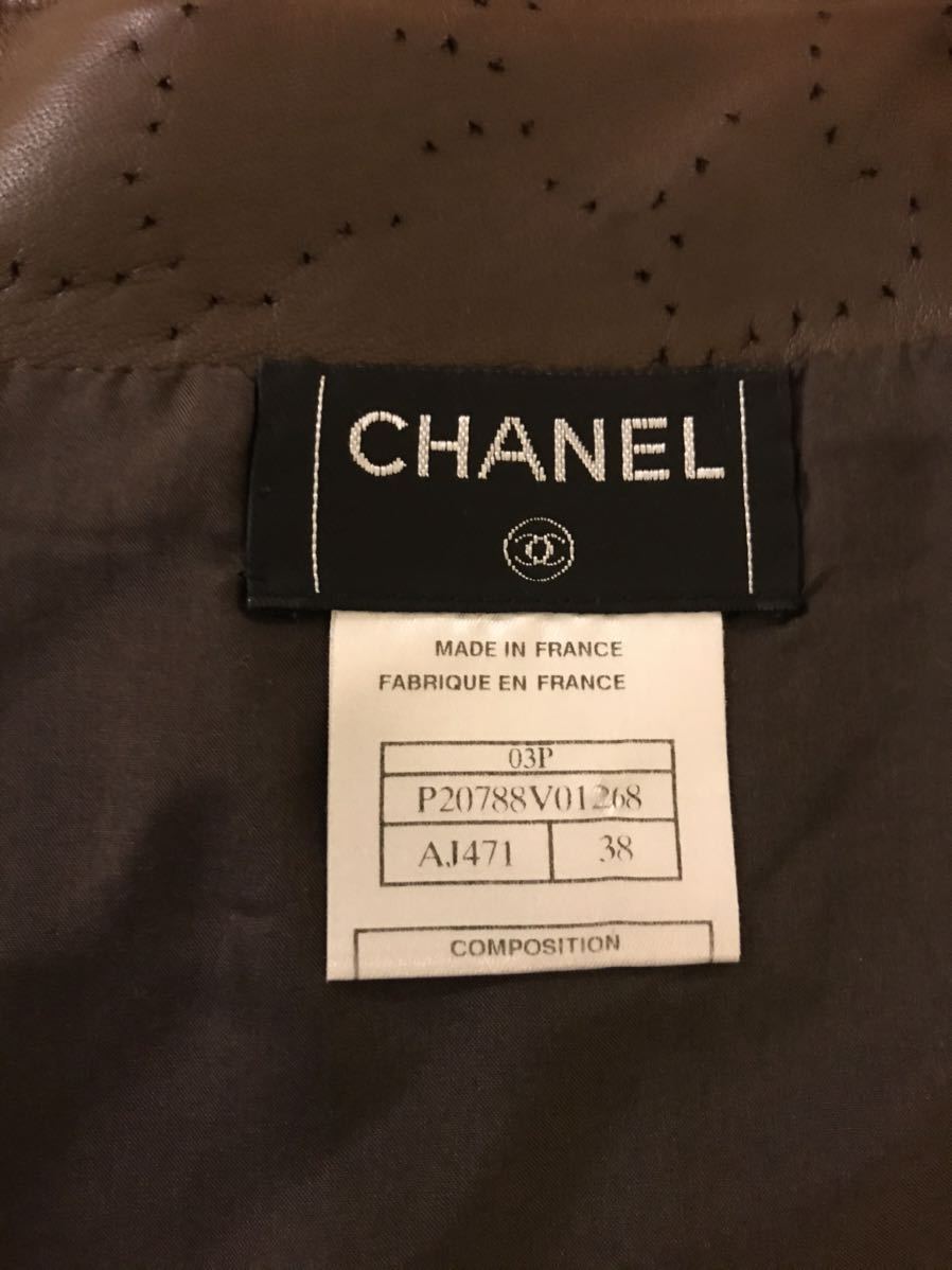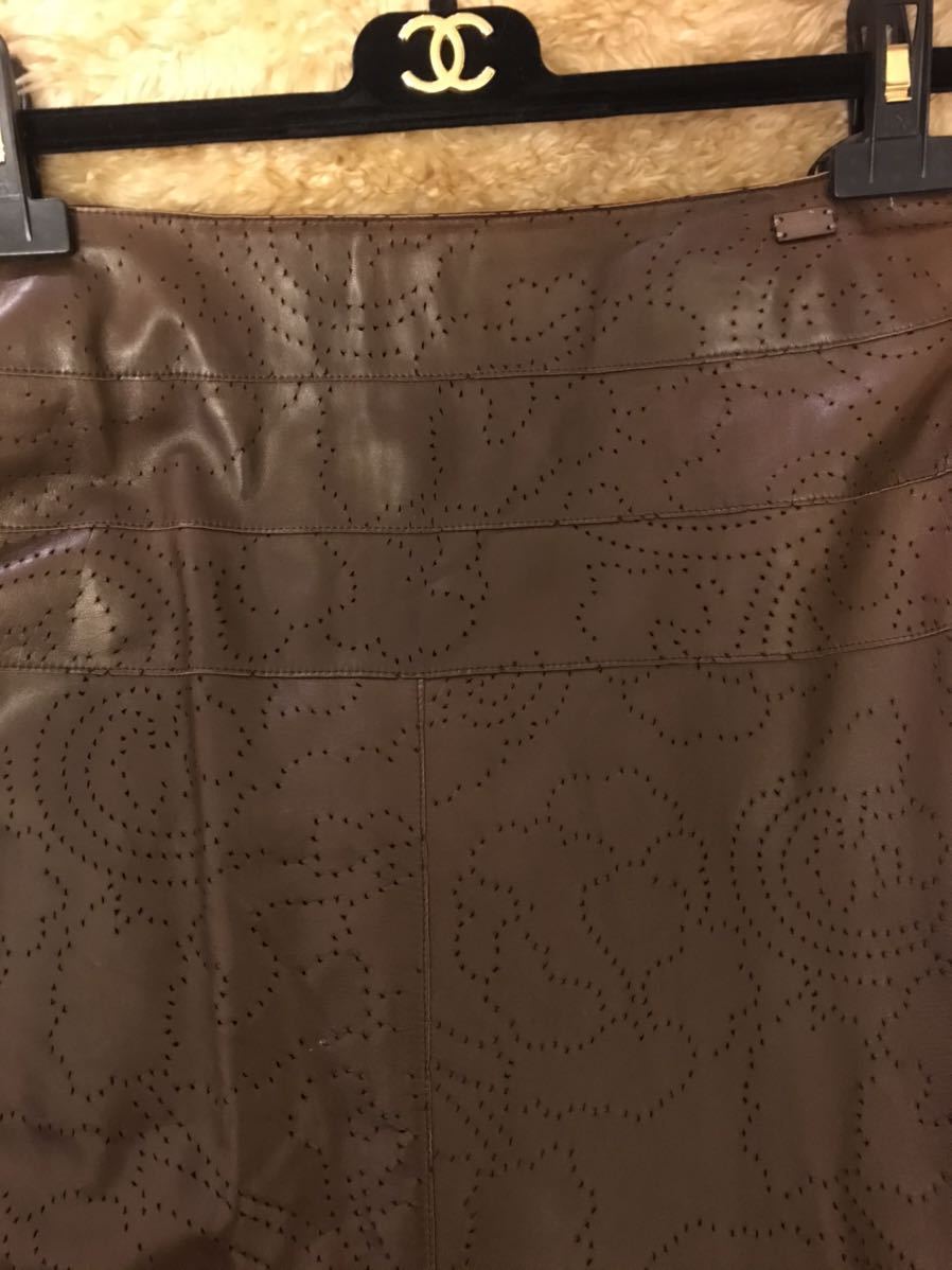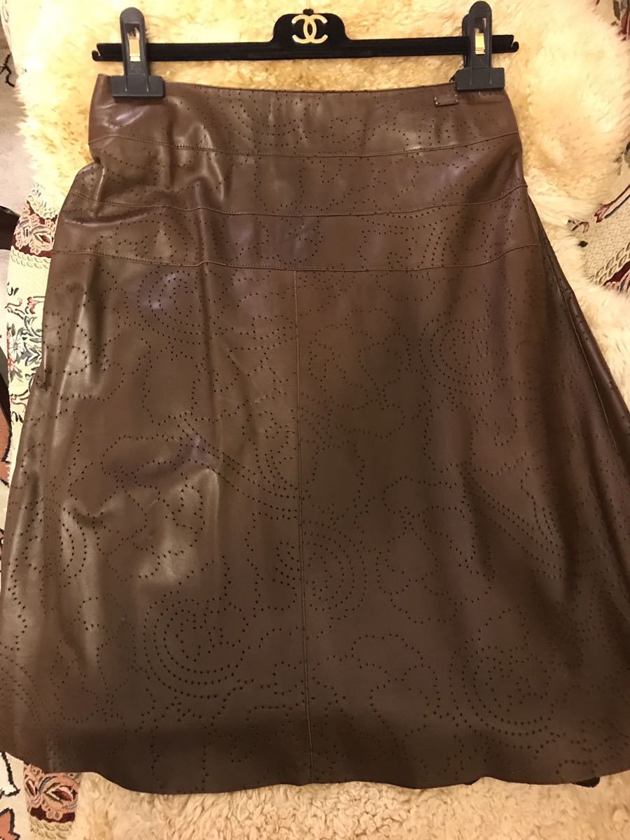 CHANEL lambskin本革 カメリアパンチング柄スカート★★★MADE IN FRANCE.★★★