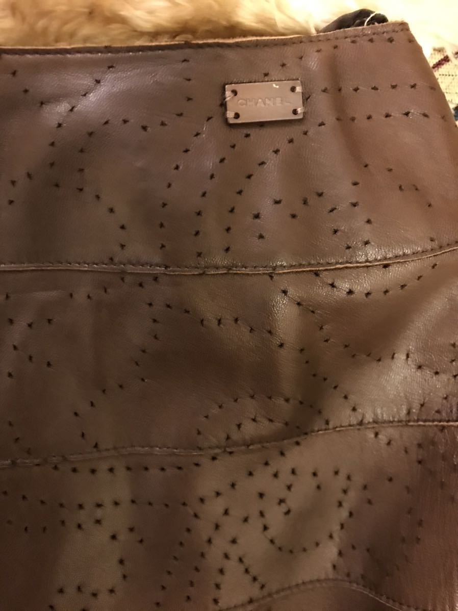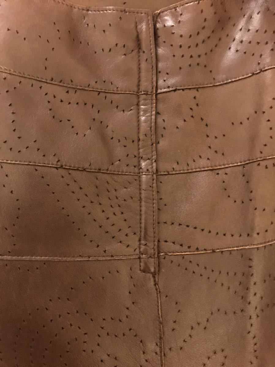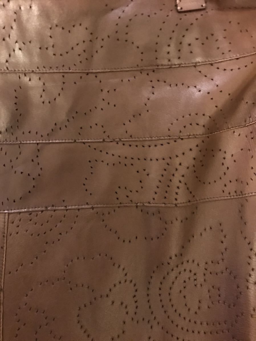 CHANEL lambskin本革 カメリアパンチング柄スカート★★★MADE IN FRANCE.★★★
