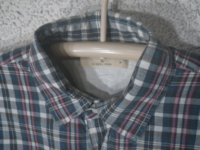 to1439 GLOBAL WORK グローバル ワーク 涼しげ リネン 麻 混紡 長袖 チェック シャツ 腕まくりボタン付き 人気 送料格安