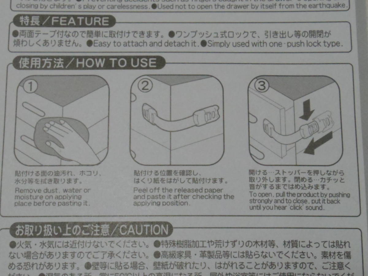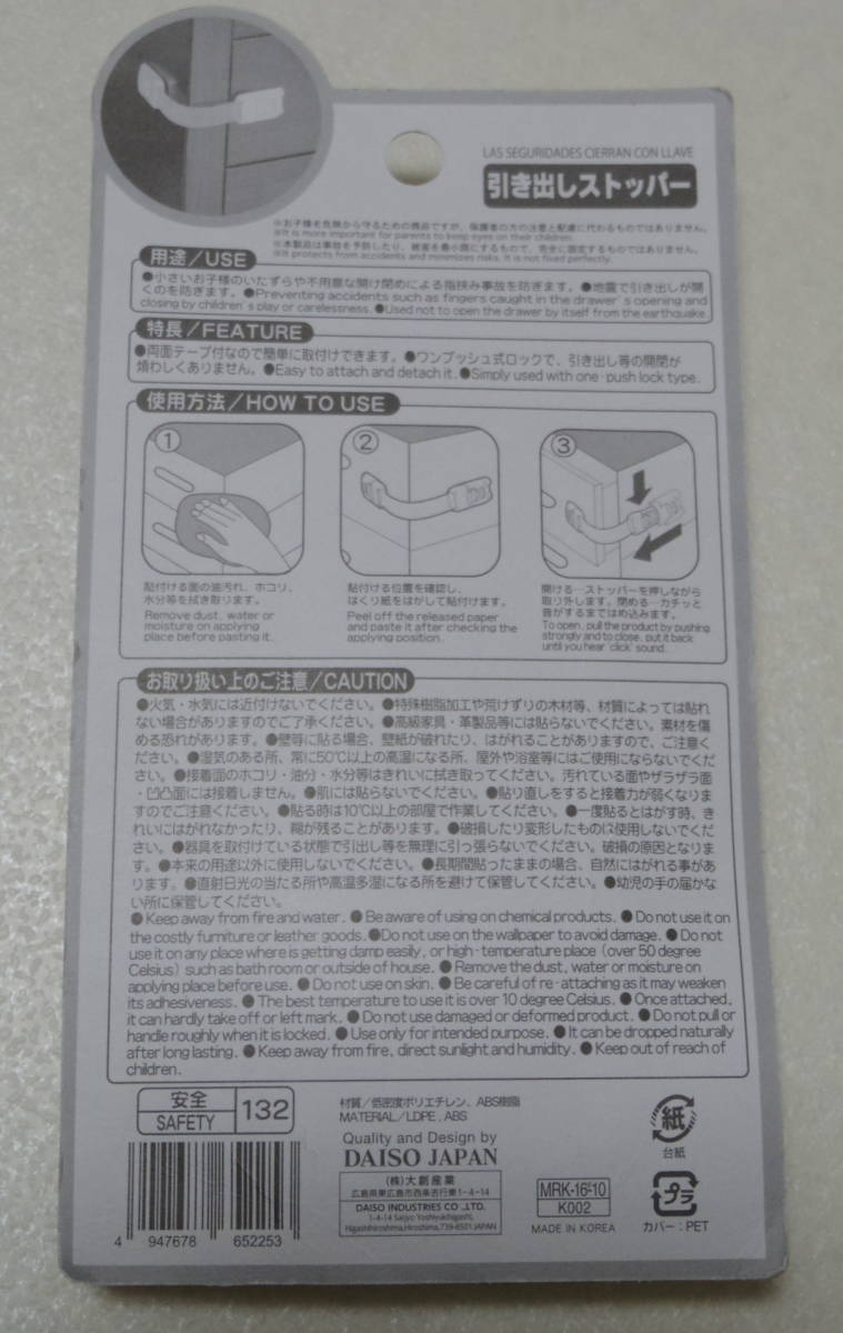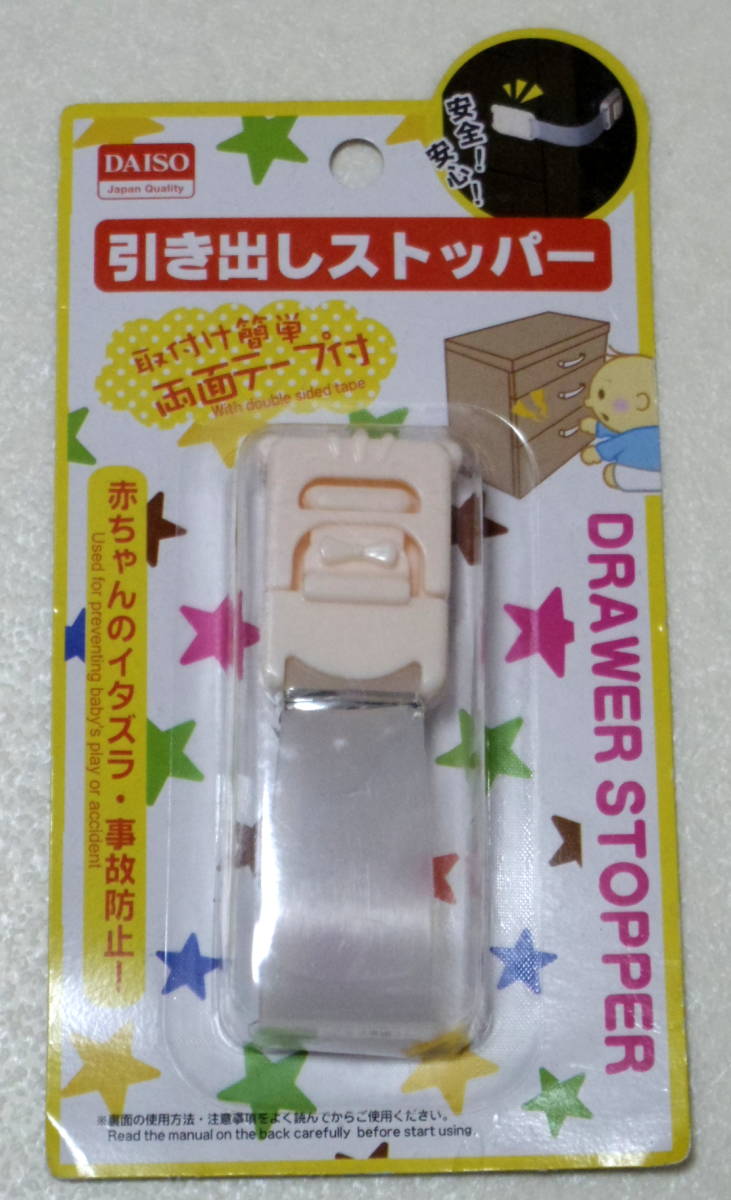 ■DAISO ダイソー 引き出しストッパー 未使用 赤ちゃんのイタズラ・事故防止! 取付け簡単 両面テープ付 132 4947678652253 ベビー用品 | |||