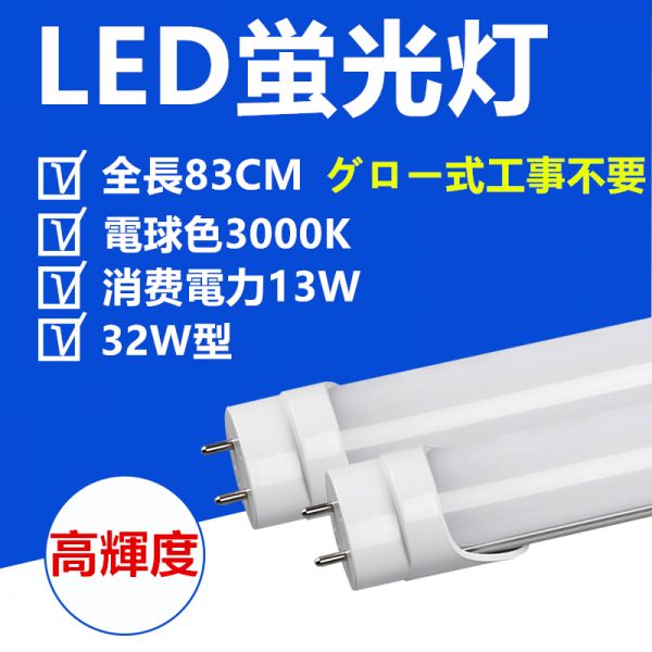 LED蛍光灯32W型 83CM 電球色 直管LED照明ライト グロー式工事不要 1本セット