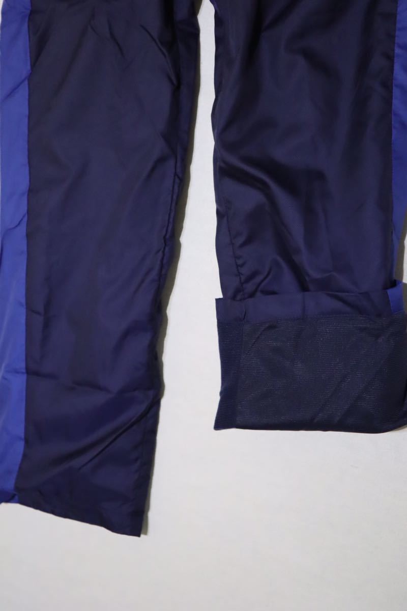 防風性に優れたポリエステル素材と、裏地には起毛素材を使用したウインドストレートパンツ。両サイド切り替え、ポケット、ウエストゴムとスピンドル仕様。左もも部キャットロゴは再帰反射。