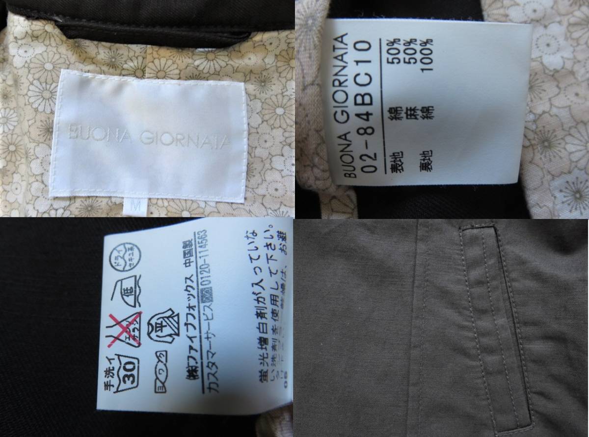 ■新品同様 美品【BUONA GIORNATA】ボナジョルナータ 高級 コットン リネン ジャケット Mサイズ ブラウンジャケット j657