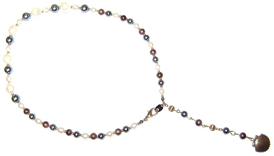 ゴールド×シルバー×ホワイト・パール×ゴールドシェル★ネックレス