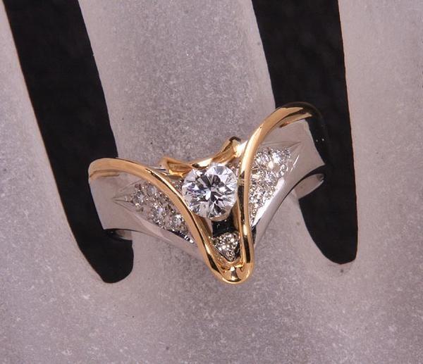 中央に0.308ctのダイアが輝くデザインリングです。