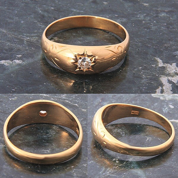 月形甲丸タイプの指輪にダイヤモンドがアクセントになっています。