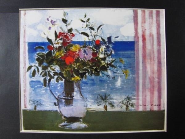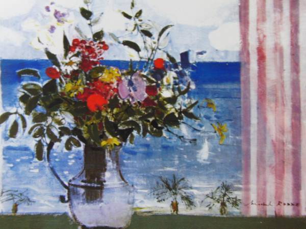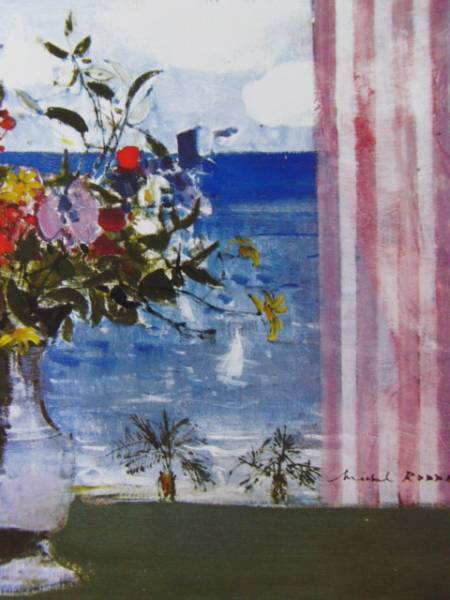 ミシェル・ロッド、カンヌの窓, 希少画集の一部を額装いたしました。版上サイン入り。年代ものの画集をほぐしたものですが、作品の状態は綺麗です。WAVⅦ