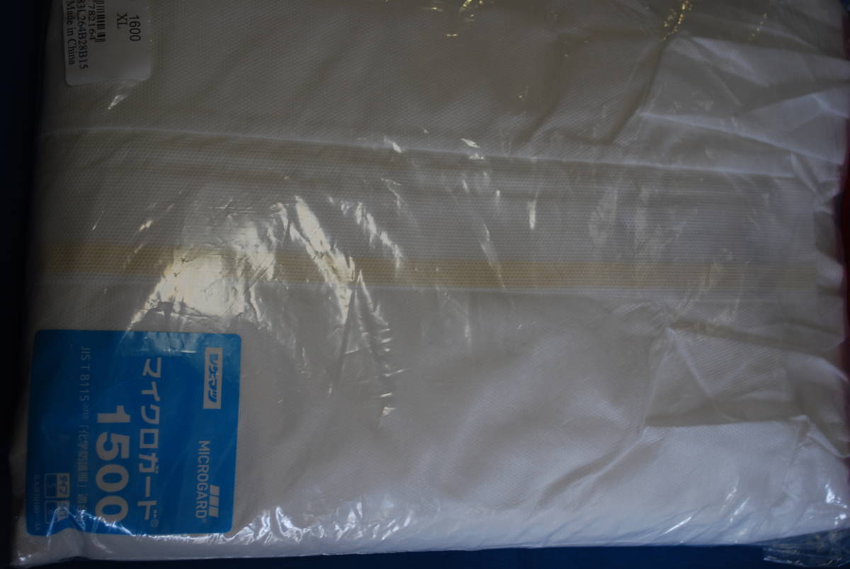 直結式小型防毒マスク GM-76 CA-104N2/OV吸収缶1個付き (重松製作所)とマイクロガード1500化学防護服・ゴーグル・シューズカバー・手袋(インナー用2組)の7点セットです。吸収缶・ゴーグル・シューズカバー・手袋はピッカピカの新品未使用、防毒マスク・化学防護服(ネットに入れて洗濯機で洗えます。実証済み)は未使用保管品です。画像を良くご覧の上、ノークレームノーリターンでよろしくお願い致します。吸収缶の保存期間は画像3ではなく、十分な余裕があります。