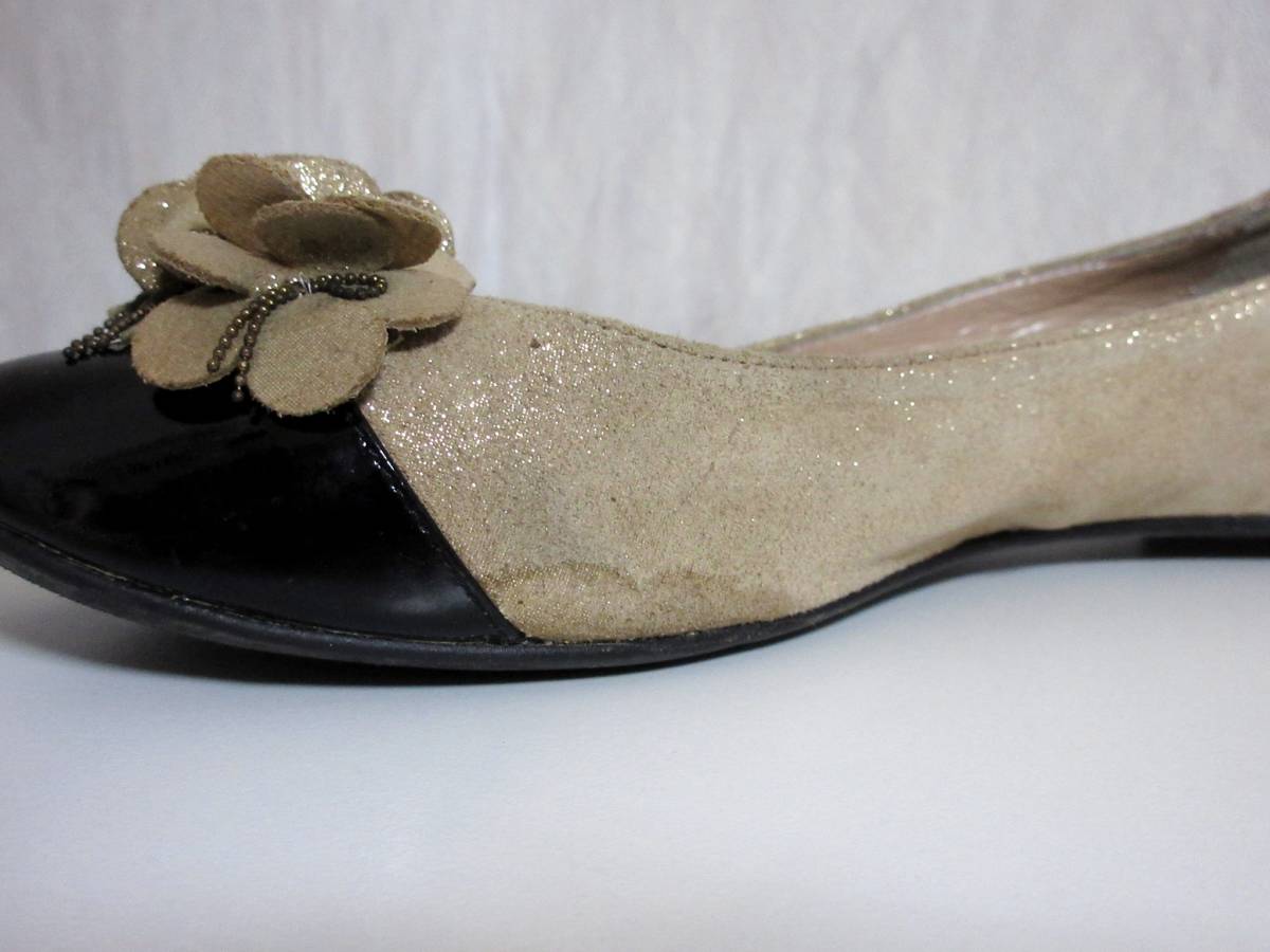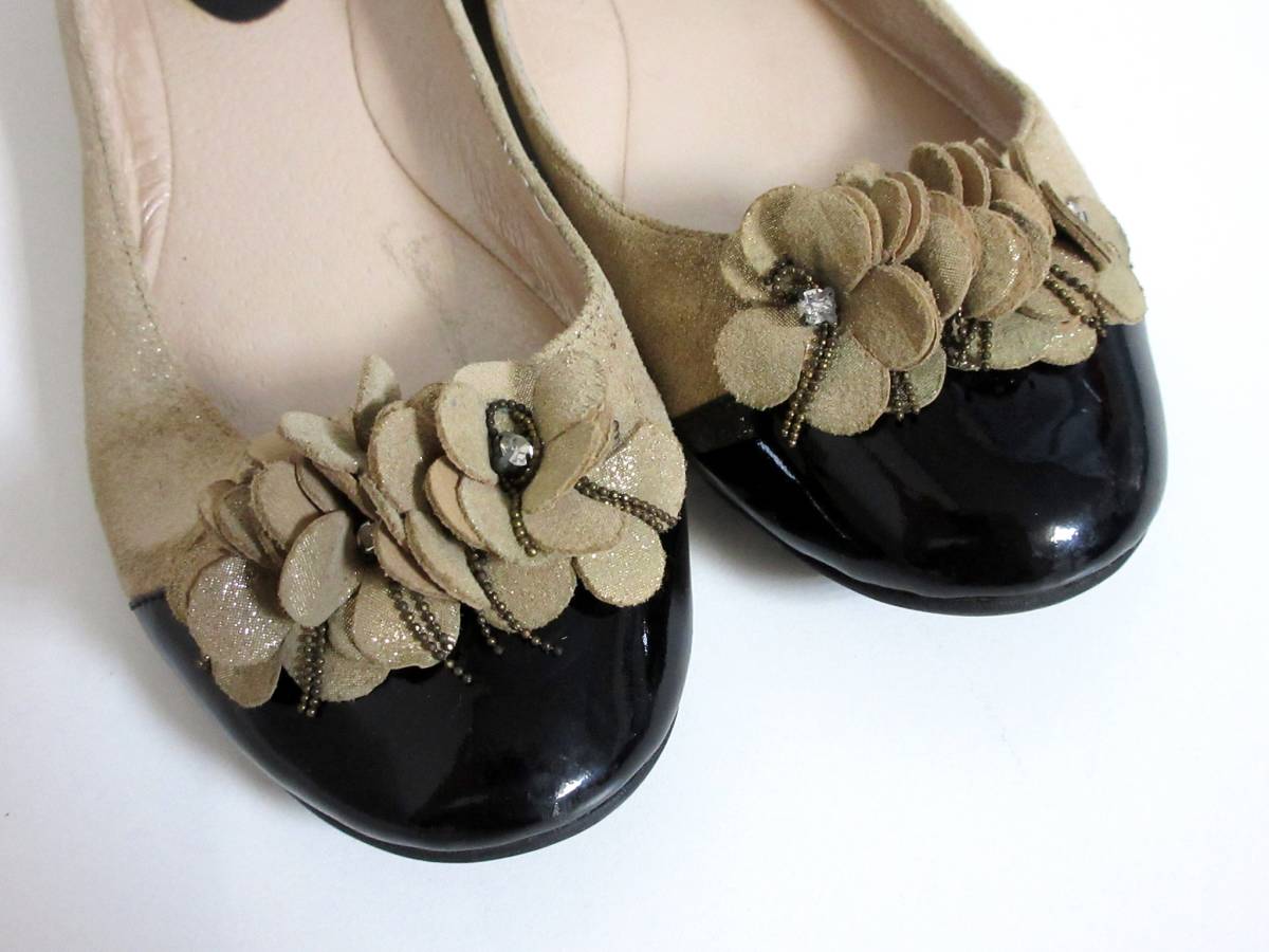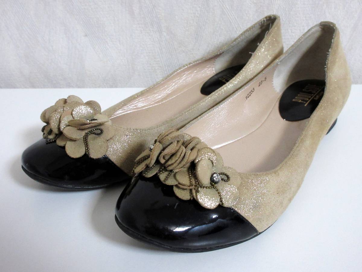 プールサイド POOL SIDE バイカラー フラワー バレエシューズ ベージュ 黒 23.5 北594