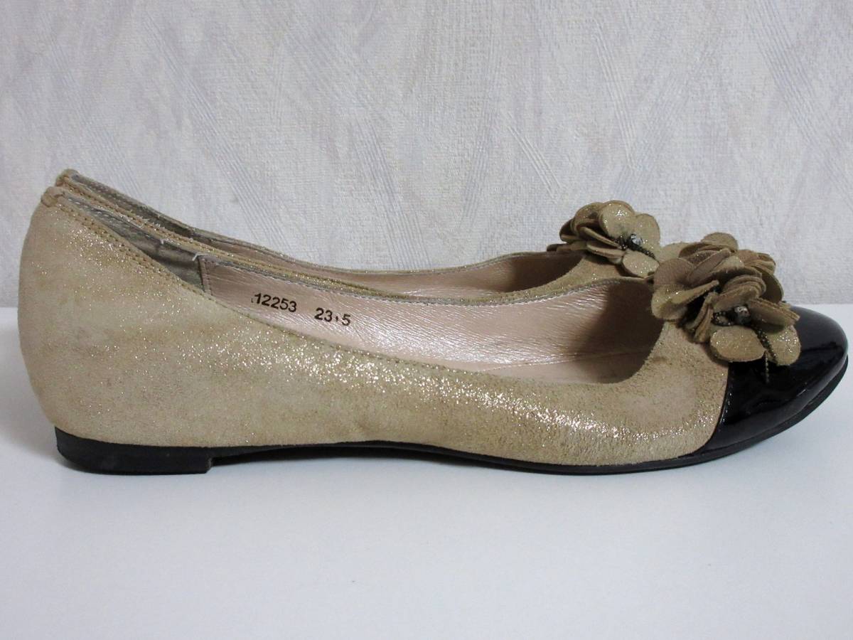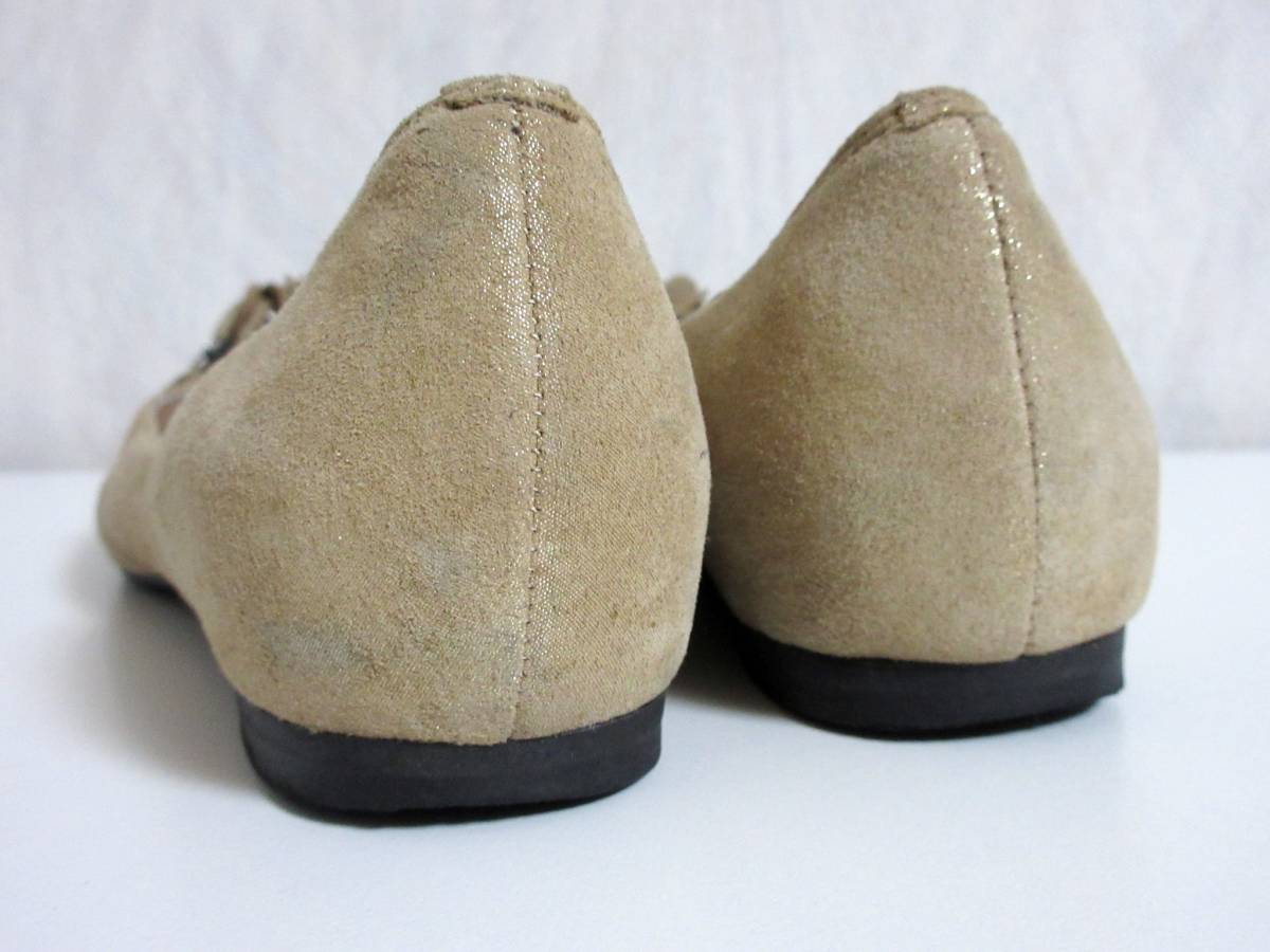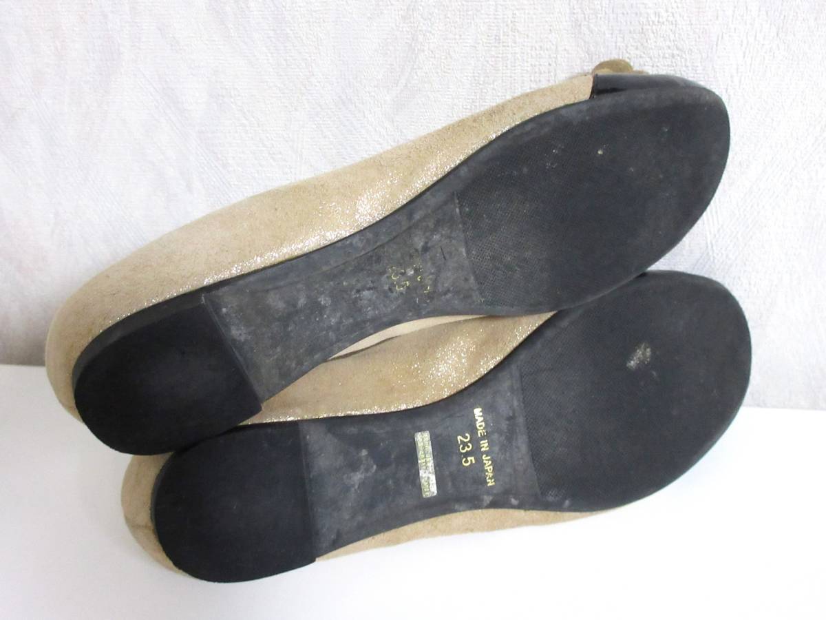 プールサイド POOL SIDE バイカラー フラワー バレエシューズ ベージュ 黒 23.5 北594