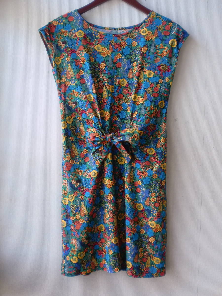 ネイビー地の大人っぽいリバティ柄のワンピースです。