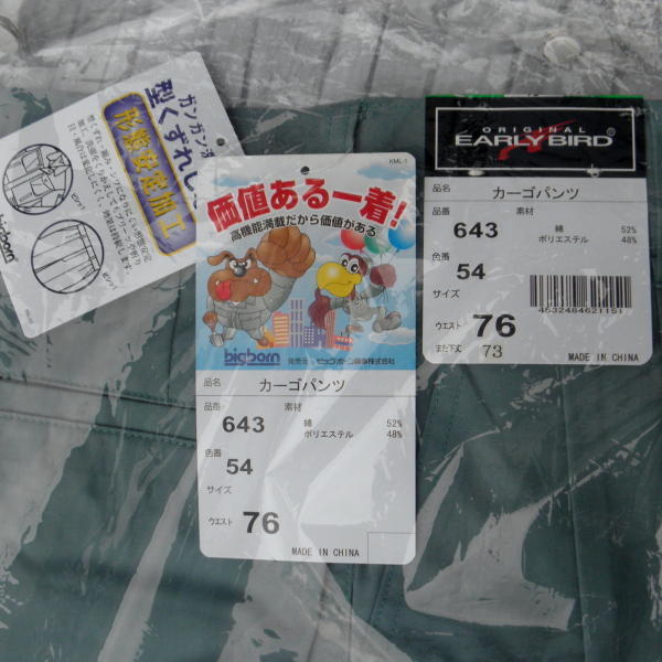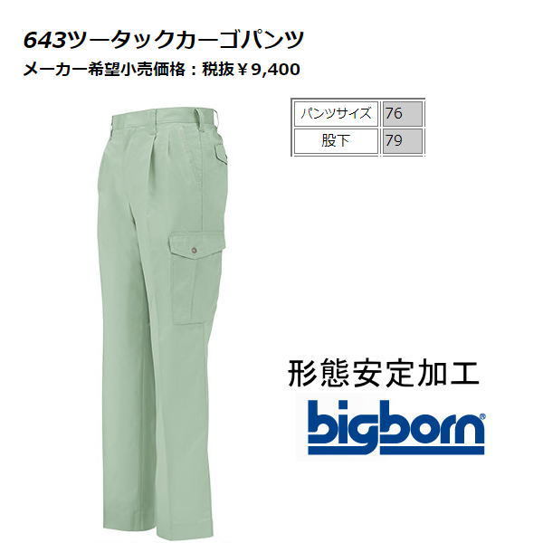 | 説明 | 新品 ツータック カーゴパンツ ビッグボーン 643 76cm 形態安定加工 サイズ76cm 股下 79cm 仕事用 ブルーグリーン 色 定価9,400円 |