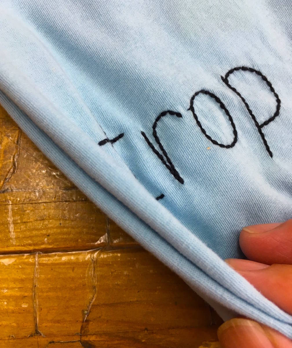 シンプルなロゴ刺繍の半袖Tシャツ。