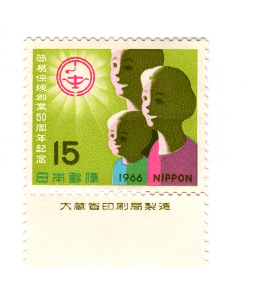 昭和41年1966「簡易保険創業50周年記念/家族と簡易保険マーク」15円切手・未使用【送料無料】「熊五郎の切手」00800365