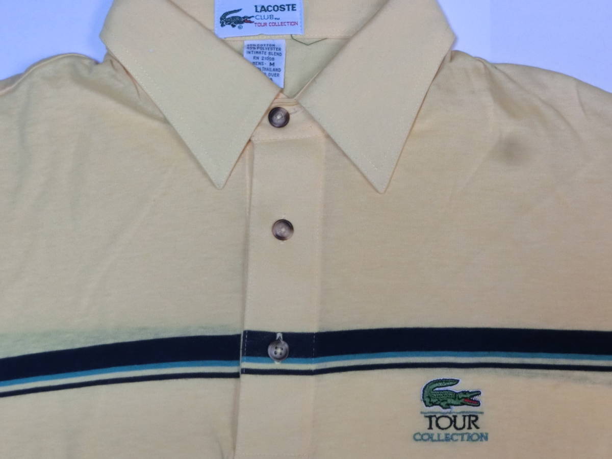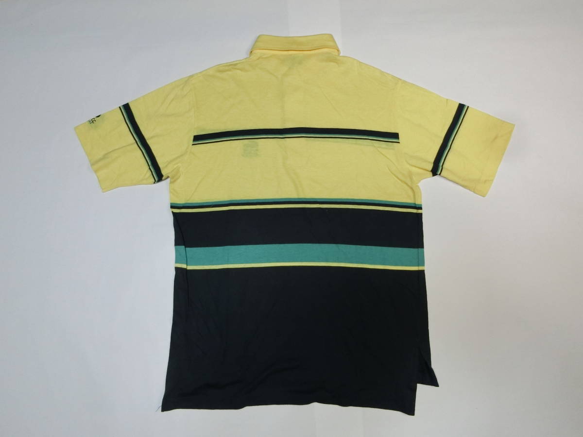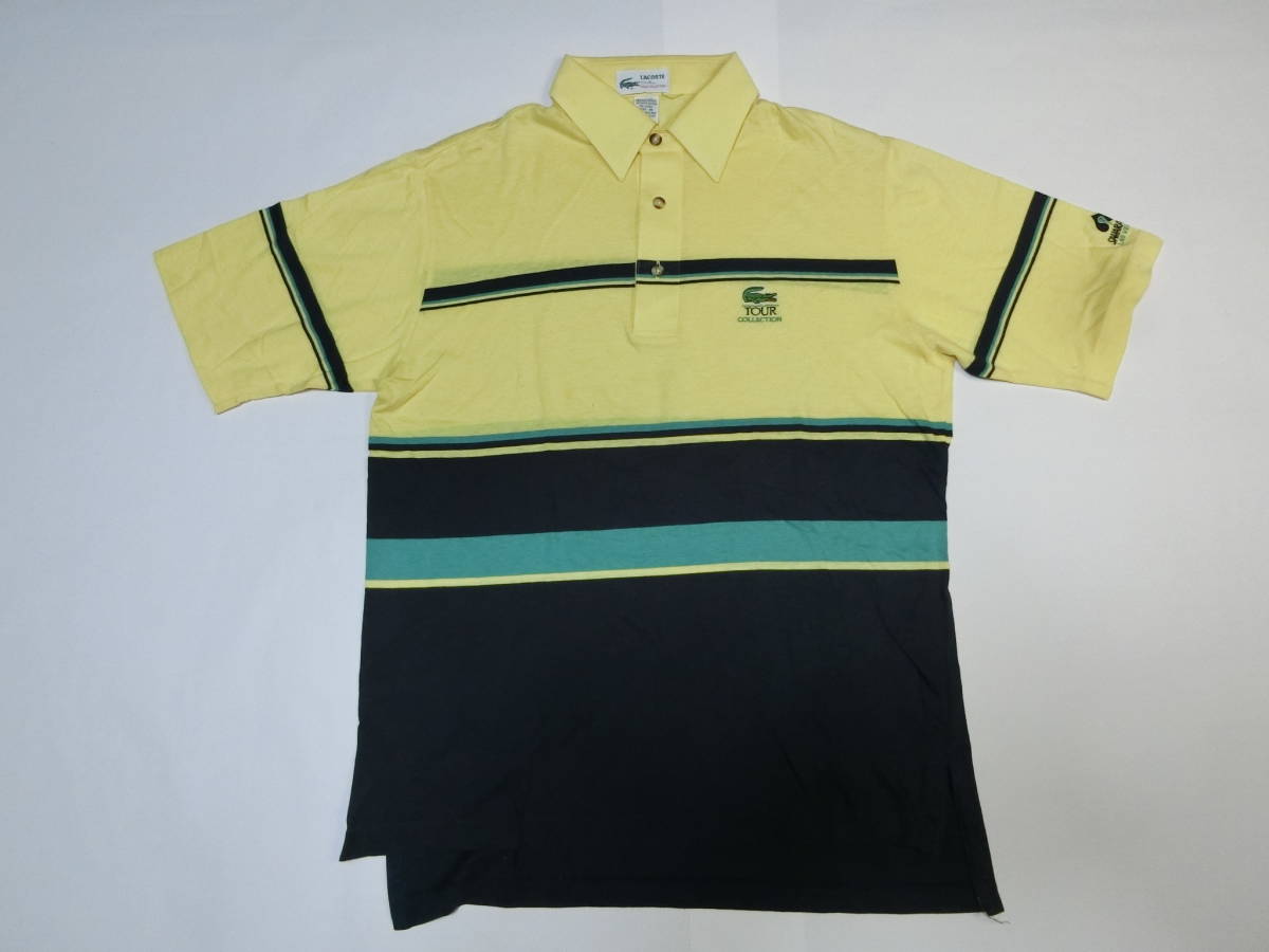 ラコステのゴルフ用ポロシャツです。小さい汚れ等中古の使用感はありますが目立つダメージはありません。ボーダー柄がいい感じです。サイズはMサイズ(肩幅、身幅、着丈それぞれ45×52×前67(後ろ71)㎝)です。
