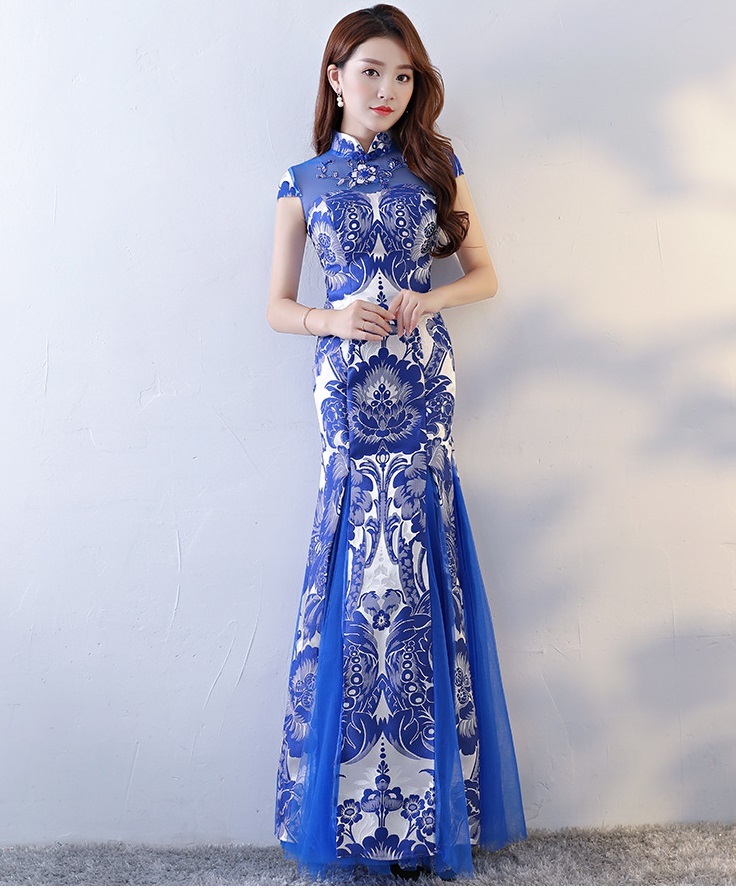 青花♪素敵♪マーメイドライン♪大好き♪ロングドレス★サイズオーダー無料★大きいサイズも小さいもOK♪チャイナ襟★二次会★演奏会など
