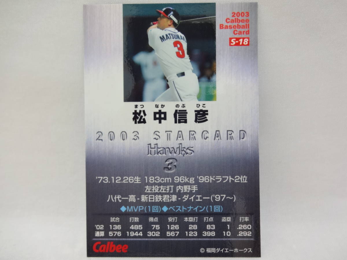 2003 カルビー STAR CARD シルバーサインパラレル S-18 福岡ダイエーホーク 3 松中 信彦です。