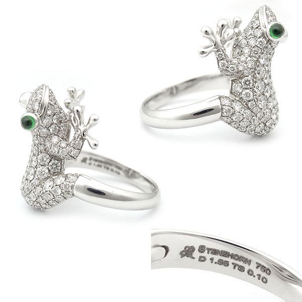 【緑屋質屋】STENZHORN(ステンツホーン) ダイヤモンド リング 1.55ct カエルモチーフ K18WG【中古】
