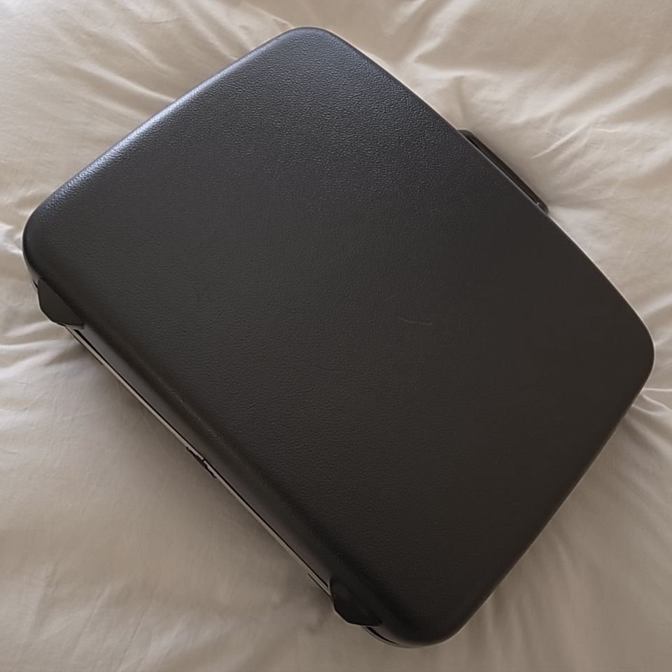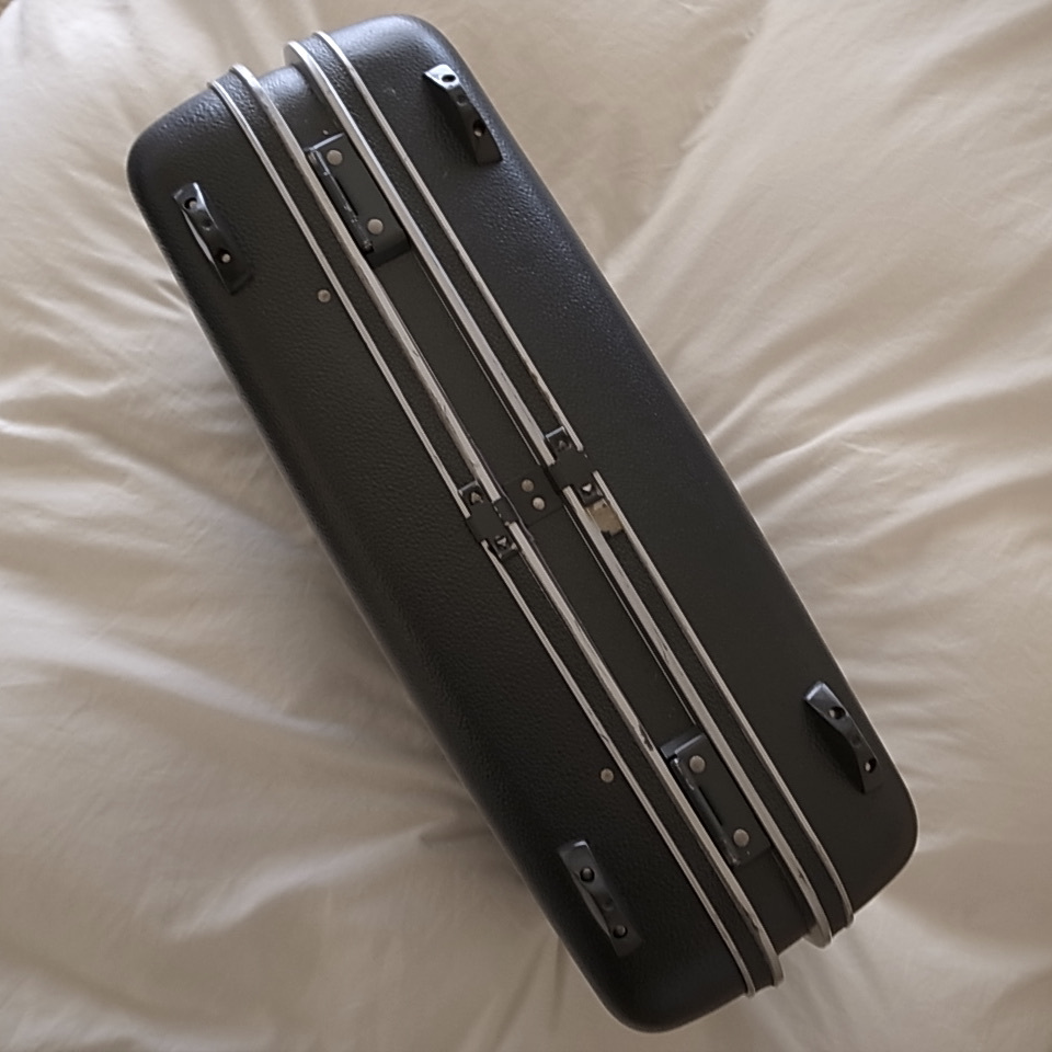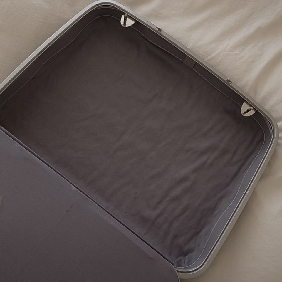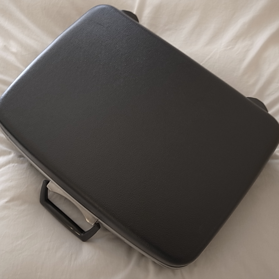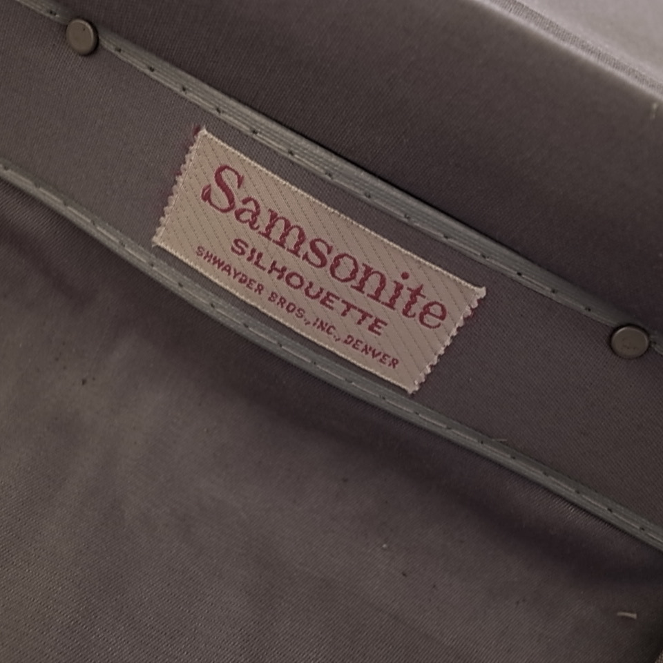 カラー:オックスフォードグレー(ダークグレー)、サイズ(概寸、ハンドル部含まず):W520mm×H400mm×D190mm。1959年発売のシルエットシリーズ、Shwayder Bros社製造の最初期の個体です。世界初の一体成形ボディと軽量合金フレームという現在のスーツケースの原型となったモデルです。機内持ち込みサイズであったこともあり、最初期のシルエットシリーズとしては使用感も少なく全体的な状態も非常に良好、ラッチおよびロックの開閉もスムーズです。鍵2本付属。着払いのゆうパックにてお送りいたします。