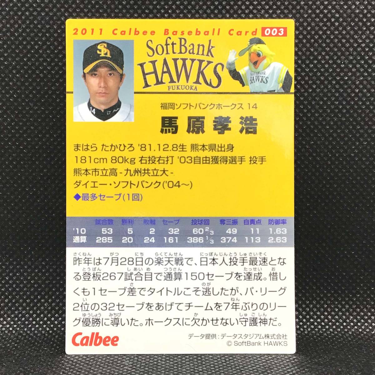 CFP【当時もの】カルビー 野球 カード 2011 No.003 馬原孝浩 プロ野球 福岡ソフトバンクホークス | |