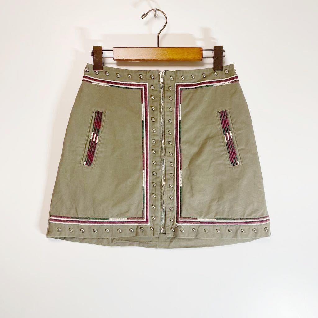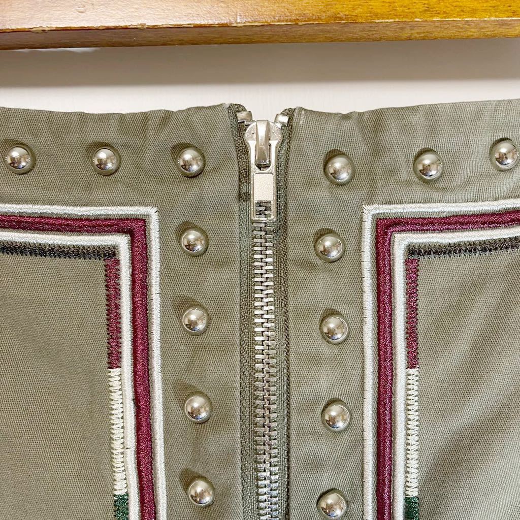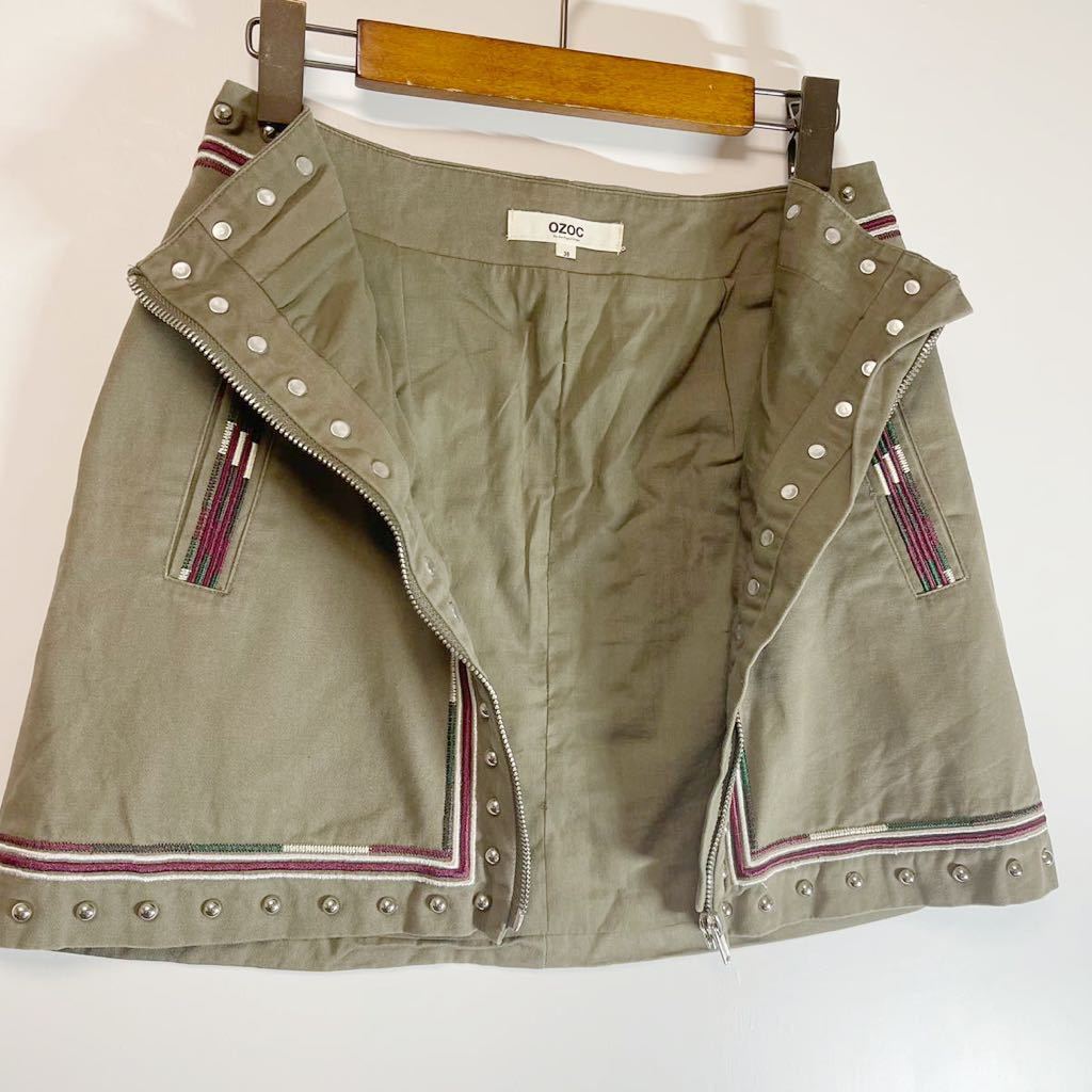 OZOC オゾック オープンジップ スタッズミニスカート ミニスカート タイトスカート 台形スカート カーキ