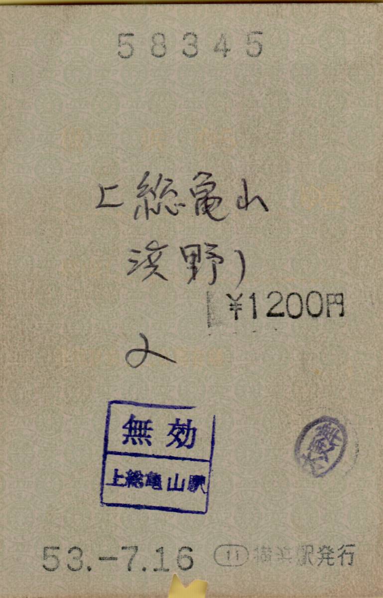 ◎ 国鉄 【 普通乗車券 】 横浜 から 上総亀山 ゆき