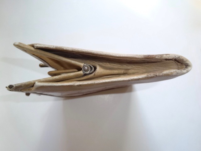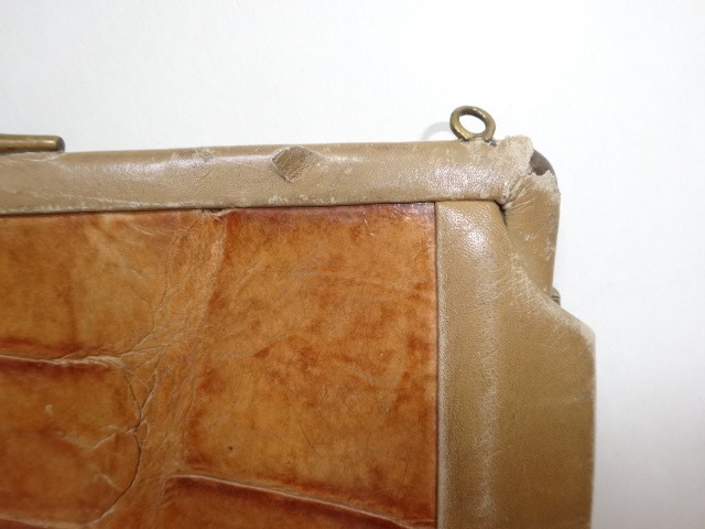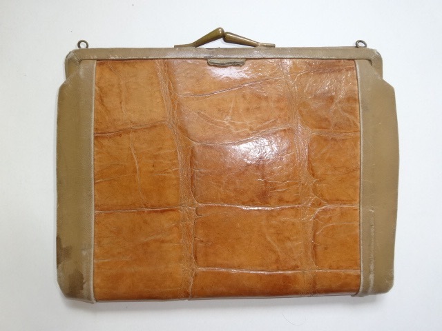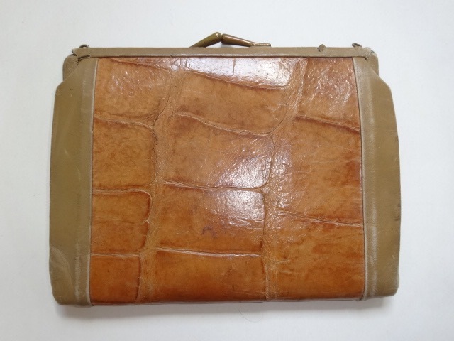 ワニの革だと思いますが、不確かです。ヴィンテージのお好きな方やコレクションされている方は、いかがでしょうか。