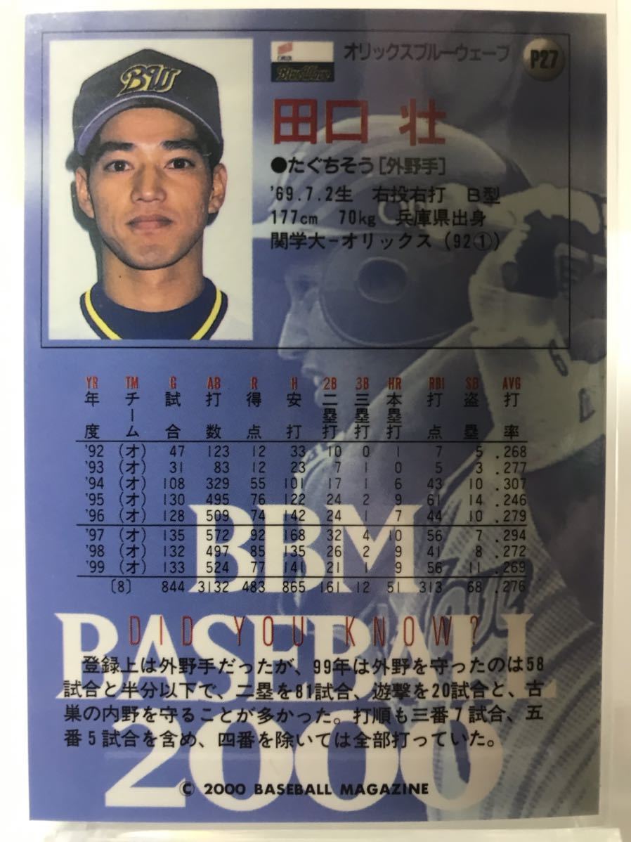 田口荘 オリックスブルーウェーブ P27 BBM 2000 ベースボールマガジン
