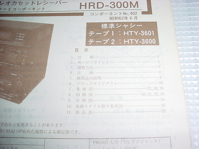 昭和62年6月 日立 システムコンポ HRD-300Mのサービスガイド