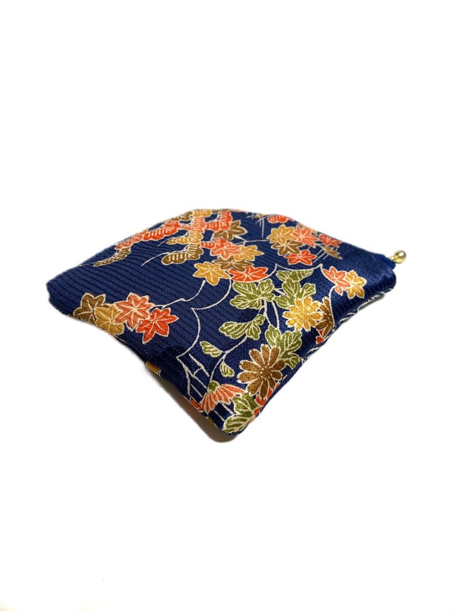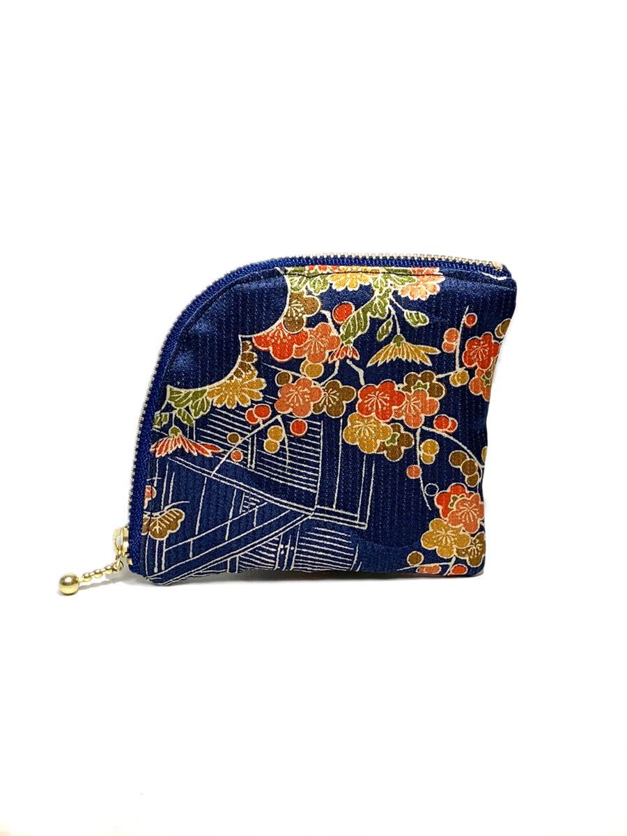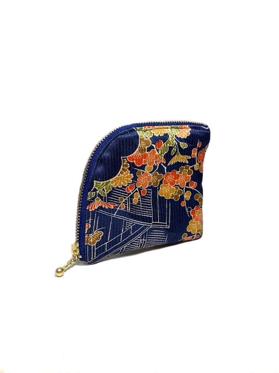鮮やかな色合いの花柄と建築物が組み合わさった高級和柄着物をリメイクしたデザインコインケースになります!