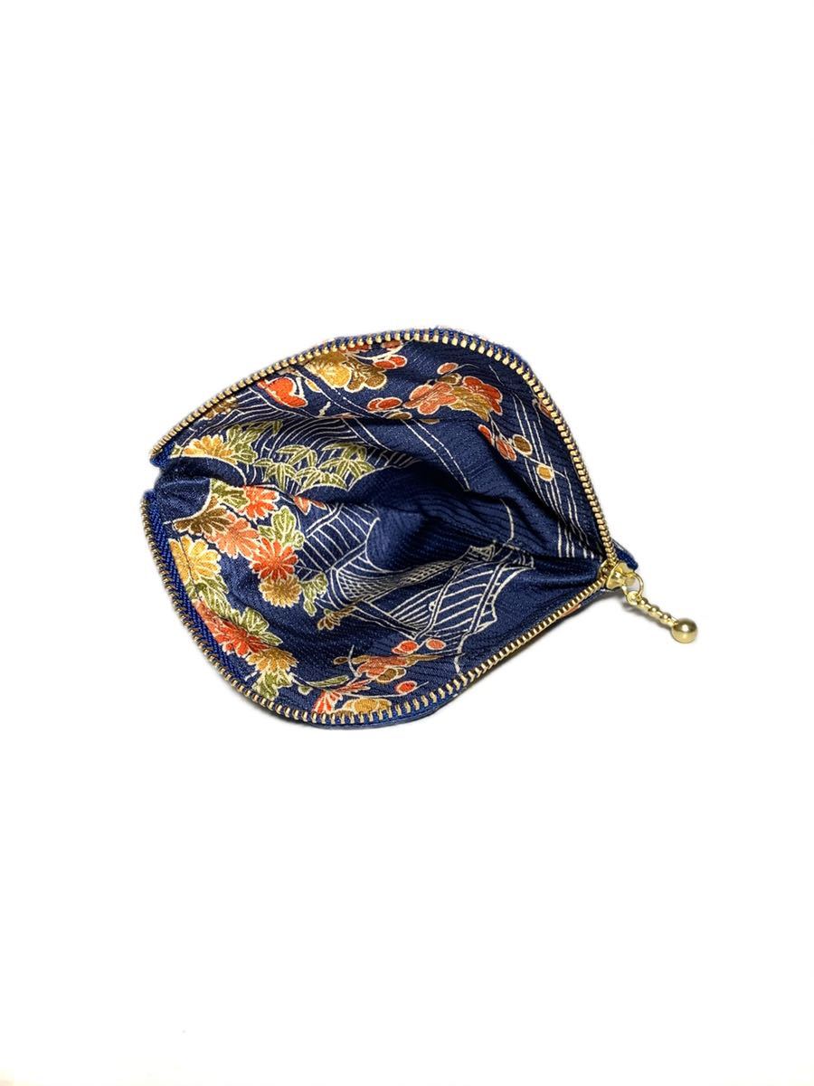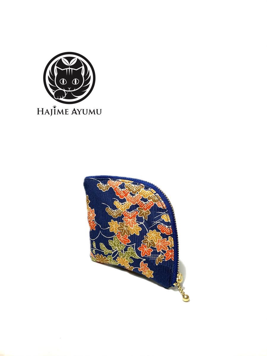 【現品1点限り】HAJIME AYUMU 高級和柄着物リメイクデザインL字財布 ネイビー