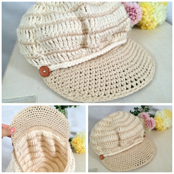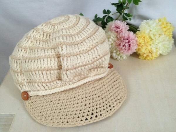 ◆西松屋◆薄手のつば付きコットンニット帽◆48cm◆