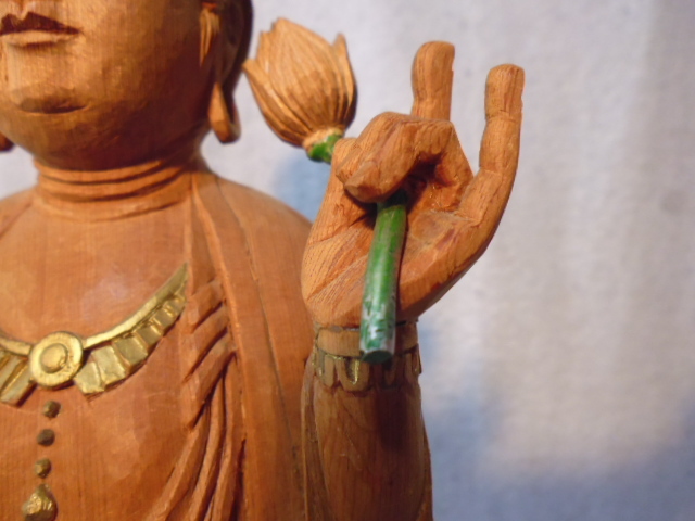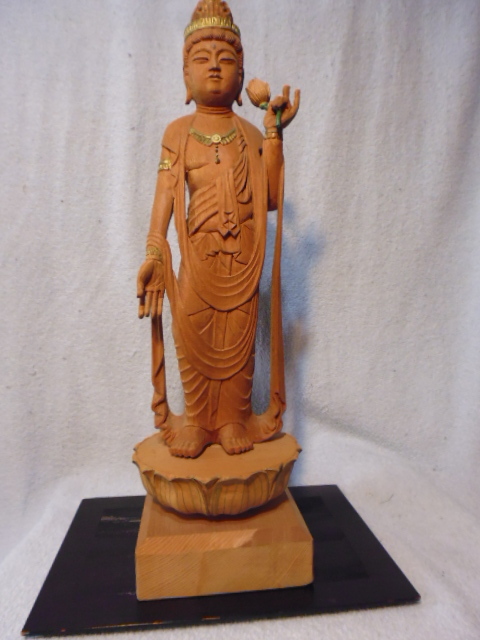 観音菩薩  木彫り  手彫り   仏教美術   オブジェ