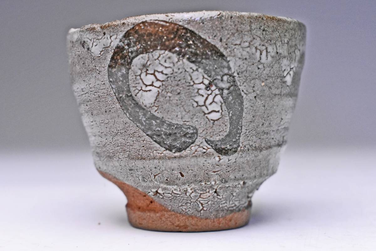 中川自然坊 ★ 絵唐津 ぐい呑 ★ 共箱 共布 栞 ★ 師:井上東也 ★ 円相 酒器 ★ 造形釉景文句なしの上作 ★