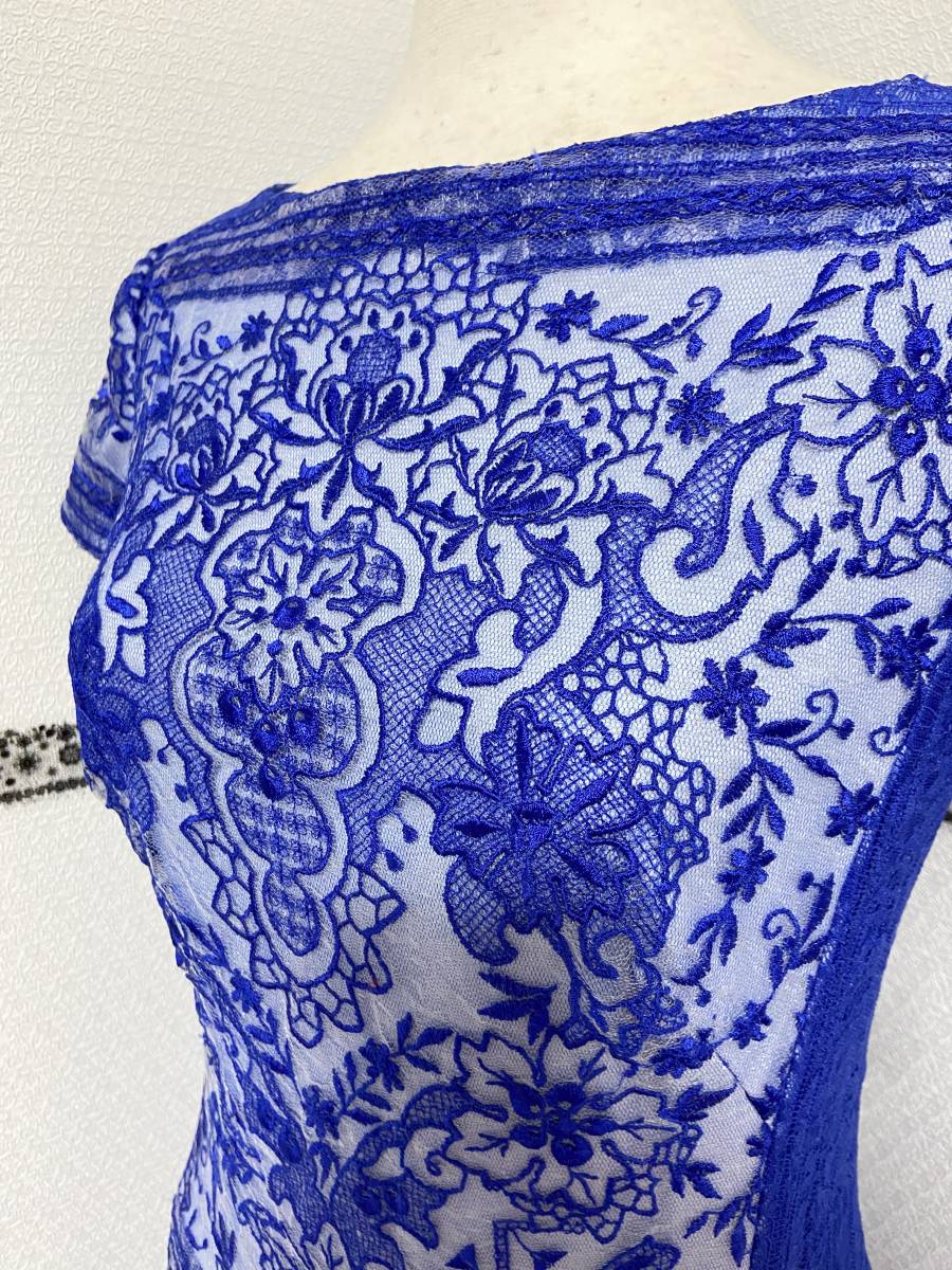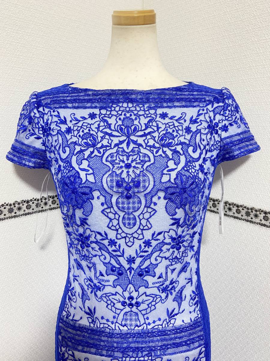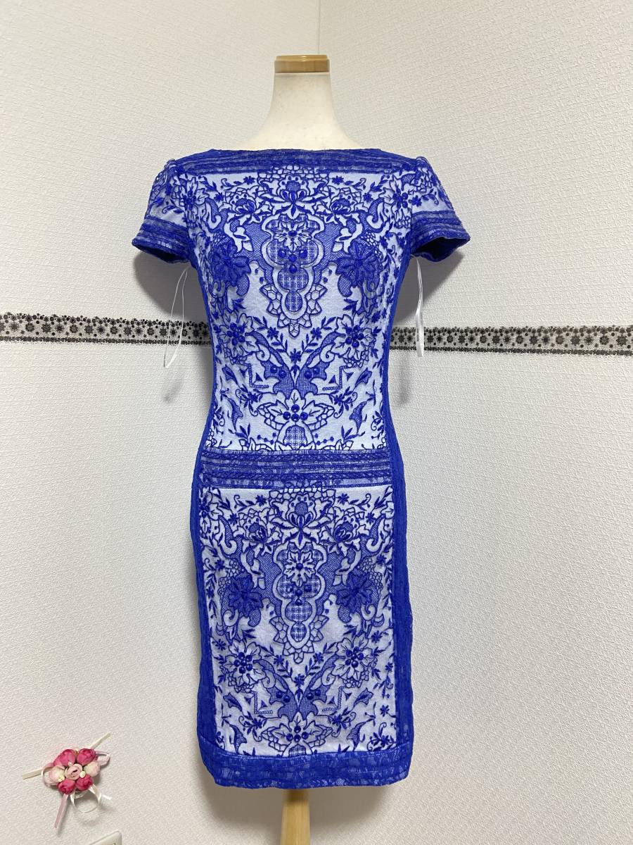 新品 2/9 Tadashi Shoji タダシショージ ホワイト/ブルー ワンピース ドレス 総レース BC106302LN