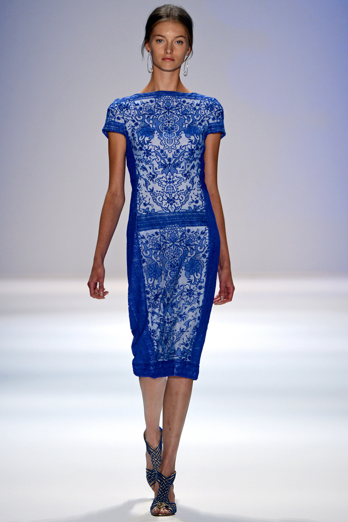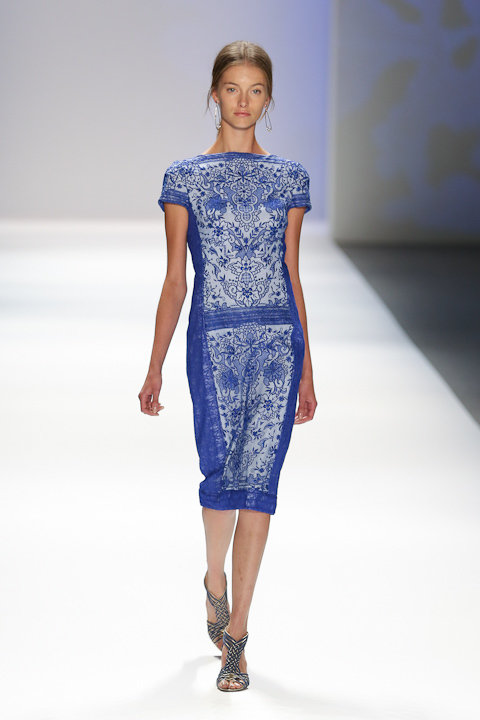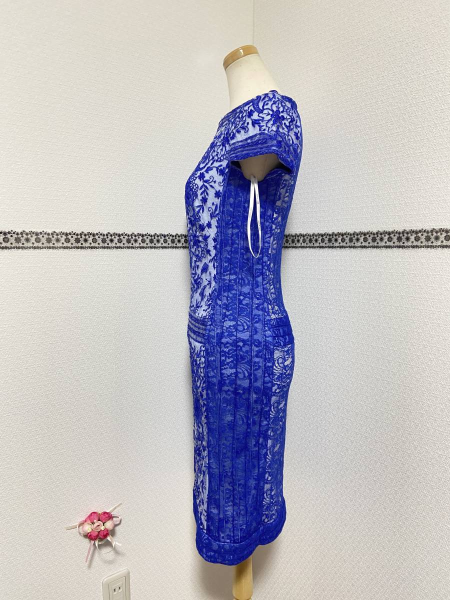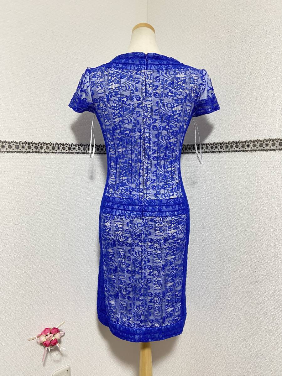 新品 2/9 Tadashi Shoji タダシショージ ホワイト/ブルー ワンピース ドレス 総レース BC106302LN