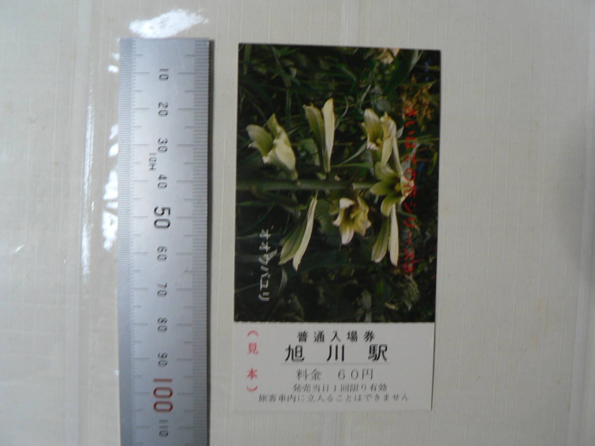 乗車券 さいはての花シリーズ8 オオウバユリ 普通入場券 旭川駅 昭和55年 見本 旭川鉄道管理局