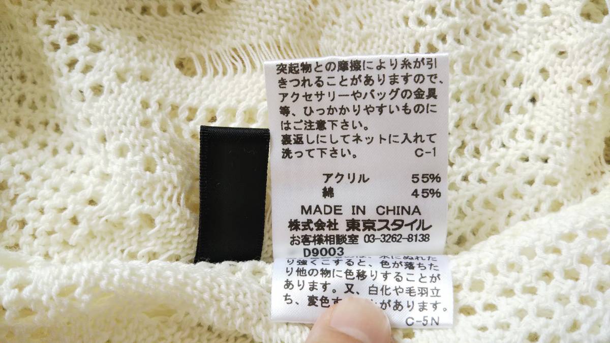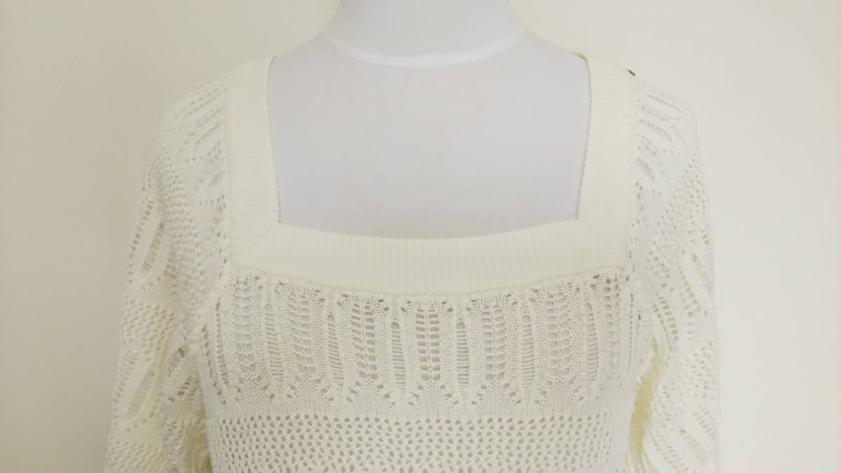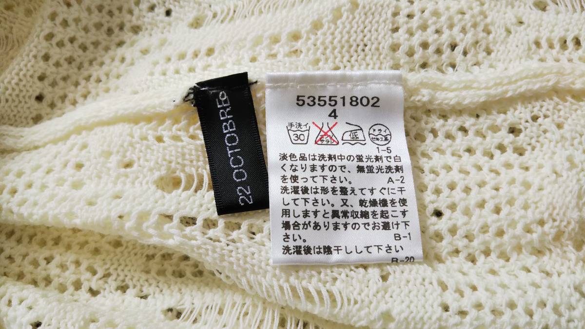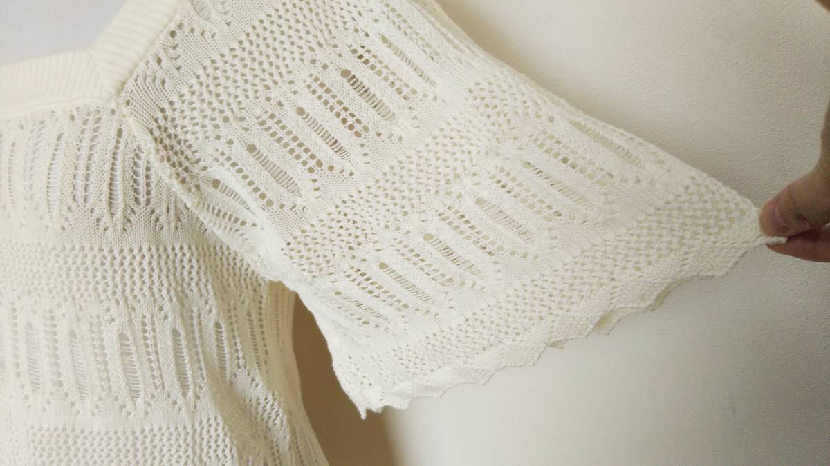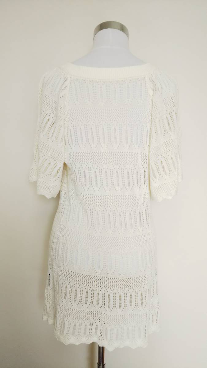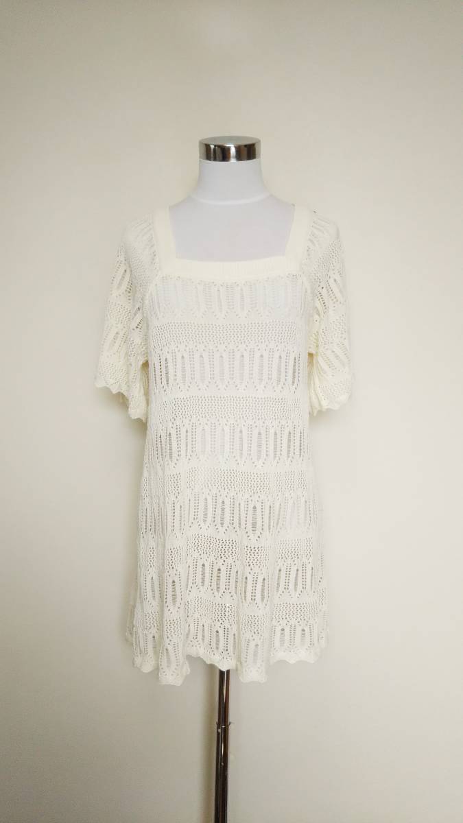 22OCTOBRE ヴァンドゥーオクトーブル 半袖透かし編み綿混ニット チュニック オフホワイト