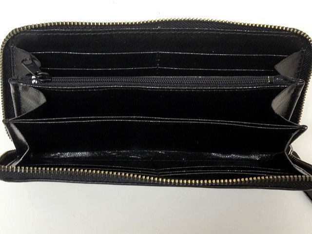 開閉口はファスナー、内に小銭など入れるファスナーポケット・お札ガード・両サイドにカードが計12枚入るカードポケット・お札など